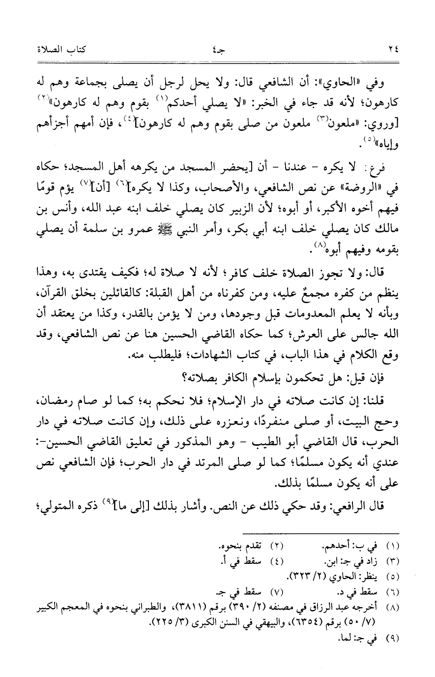 وفي "الحاوي": أن الشافعي قال: ولا يحل لرجل أن يصلي بجماعة وهم له كارهون؛ لأنه قد جاء في الخبر: "لا يصلي أحدكم بقوم وهم له كارهون" [وروي: "ملعون ملعون من صلى بقوم وهم له كارهون]، فإن أمهم أجزأهم وإياه".