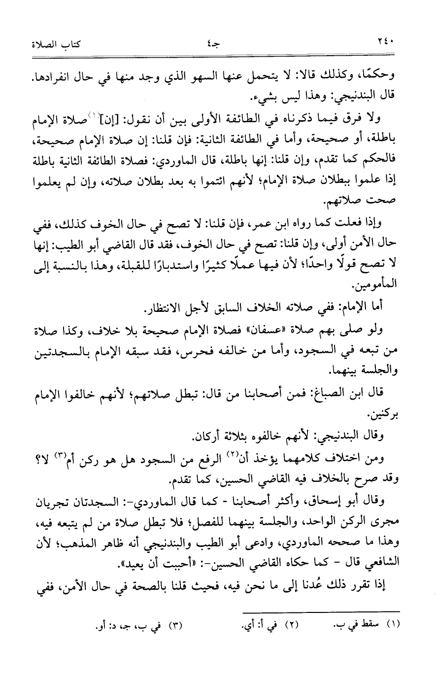 وقال البندنيجي: لأنهم خالفوه بثلاثة أركان.