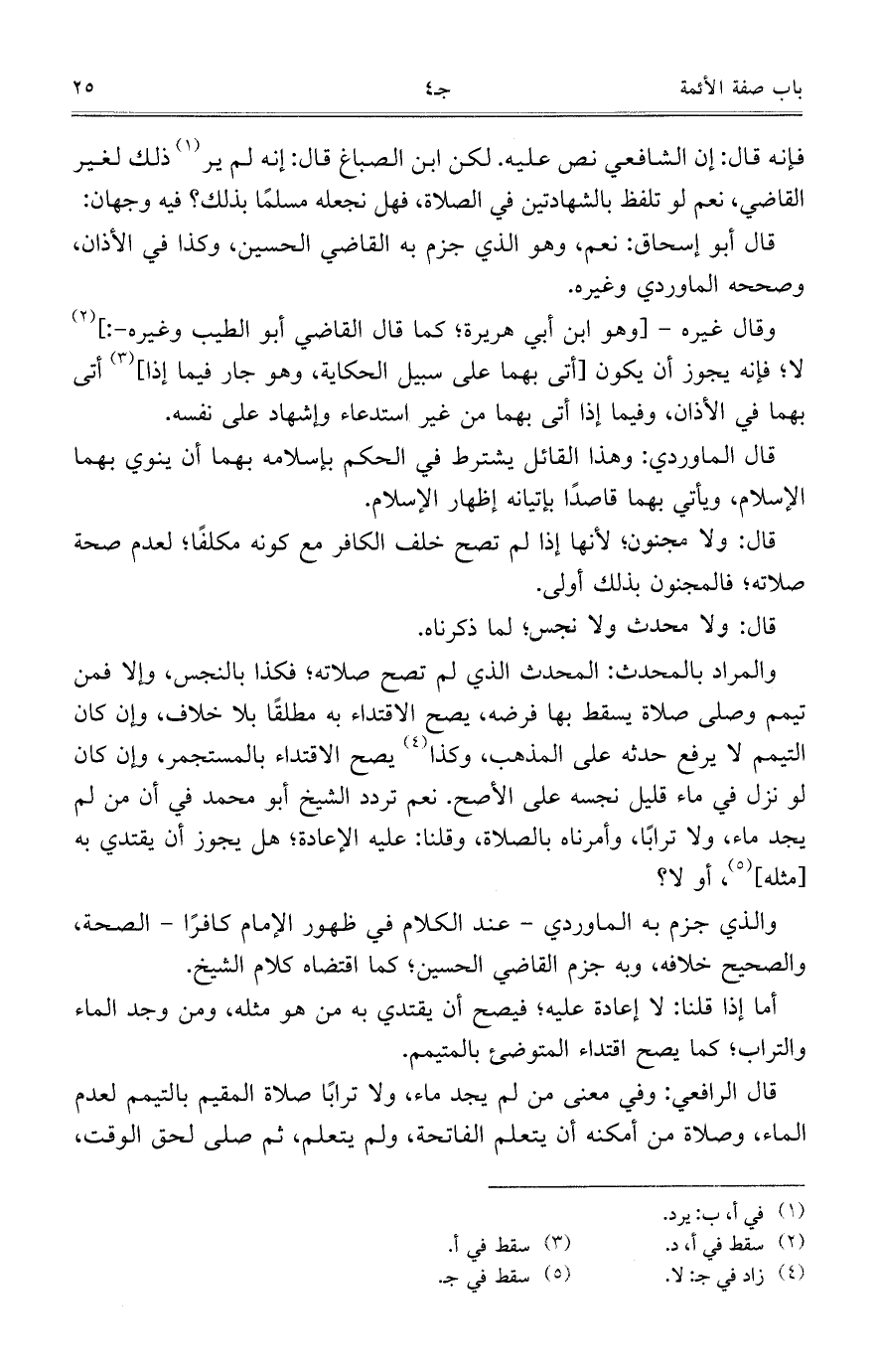 والمراد بالمحدث: المحدث الذي لم تصح صلاته؛ فكذا بالنجس، وإلا فمن تيمم وصلى صلاة يسقط بها فرضه، يصح الاقتداء به مطلقاً بلا خلاف، وإن كان التيمم لا يرفع حدثه على المذهب، وكذا يصح الاقتداء بالمستجمر، وإن كان لو نزل في ماء قليل نجسه على الأصح. نعم تردد الشيخ أبو محمد في أن من لم يجد ماء، ولا تراباً، وأمرناه بالصلاة، وقلنا: عليه الإعادة؛ هل يجوز أن يقتدي به [مثله]، أو لا؟