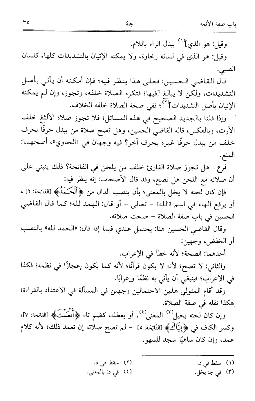 وقد أقام المتولي هذين الاحتمالين وجهين في المألة في الاعتداد بالقراءة؛ هكذا قله فى صفة الصلاة.