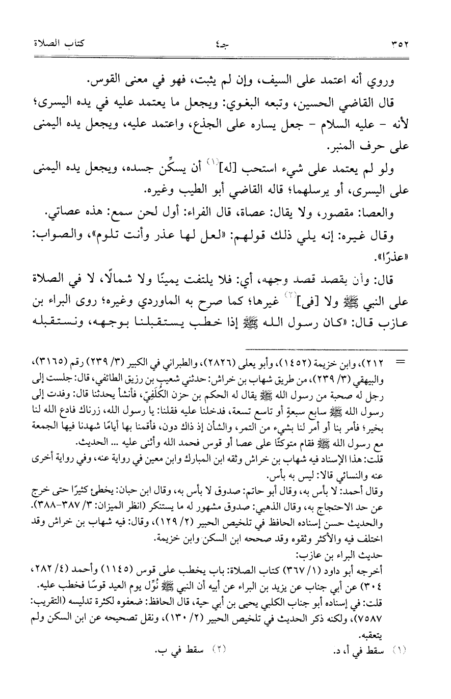وروي أنه اعتمد على السيف، وإن لم يثبت، فهو في معنى القوس.