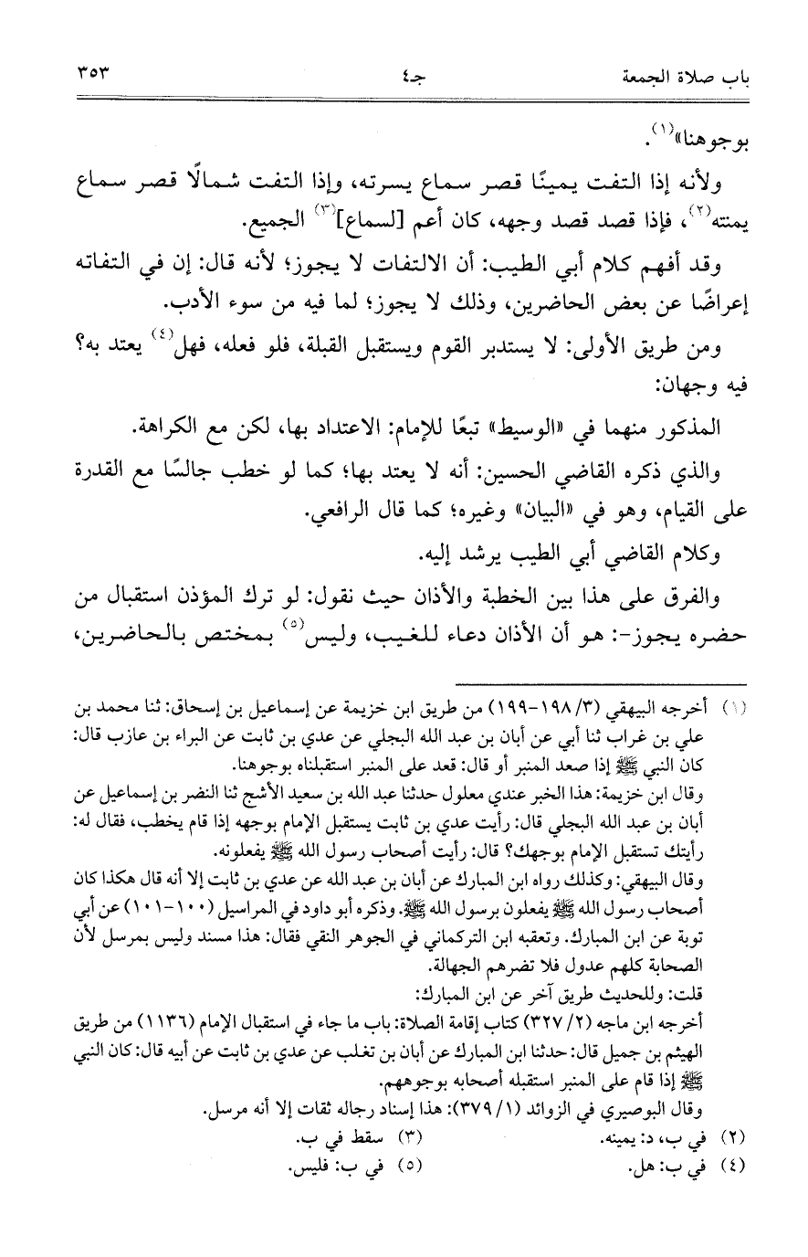 وقد أفهم كلام أبي الطيب: أن الالتفات لا يجوز؛ لأنه قال: إن في التفاته إعراضاً عن بعض الحاضرين، وذلك لا يجوز؛ لما فيه من سوء الأدب.