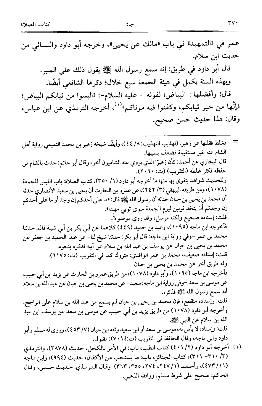 عمر في "التمهيد" في باب "مالك عن يحيى"، وخرجه أبو داود والنسائي من حديث ابن سلام.