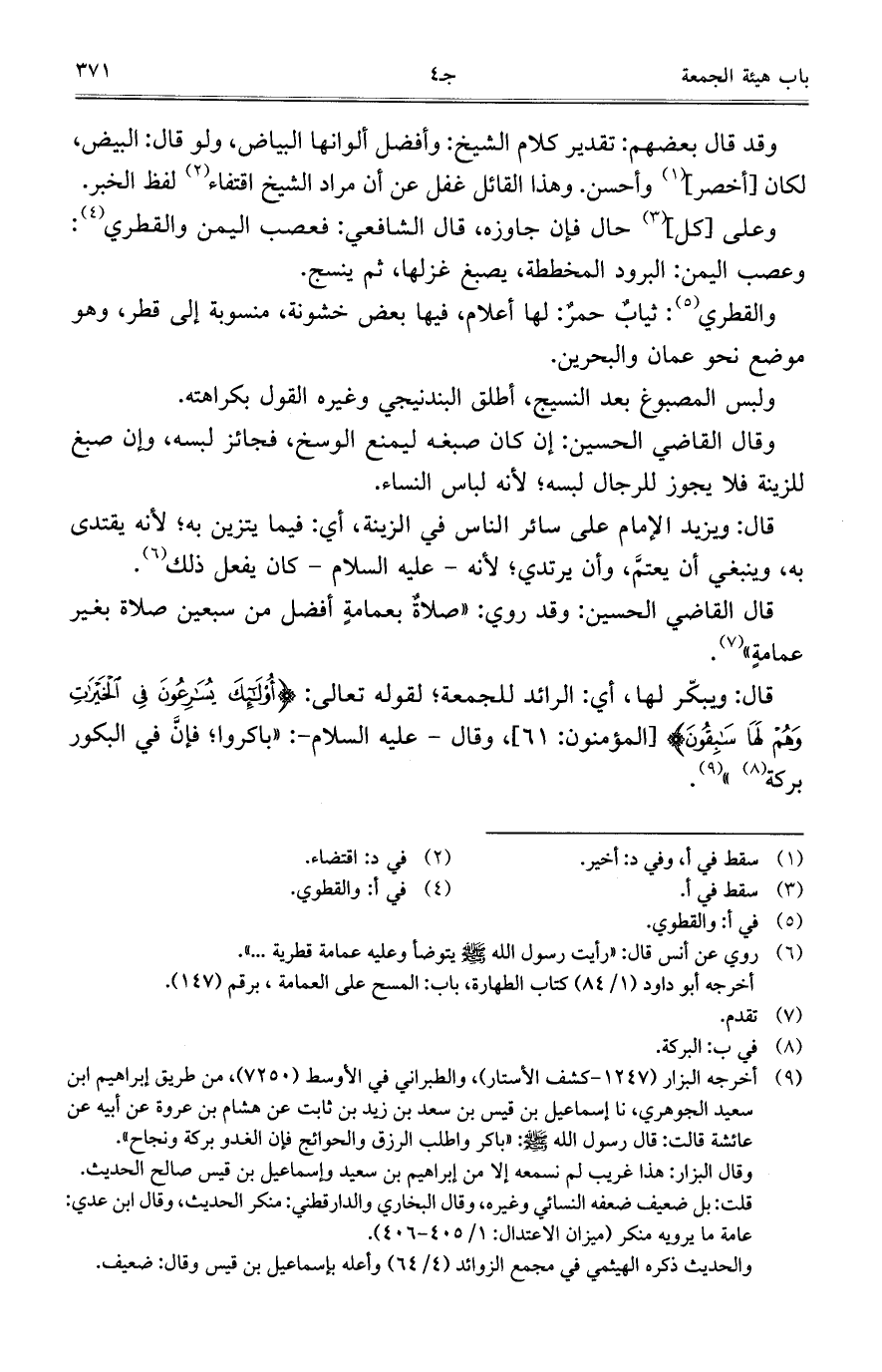 قال القاضي الحسين: وقد روي: "صلاةٌ بعمامةٍ أفضل من سبعين صلاة بغير عمامةٍ".
