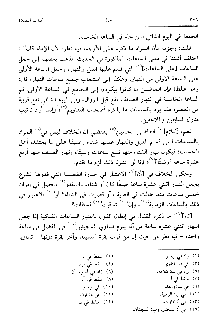 [ثم] ما ذكره القفال في إبطال القول باعتبار الساعات الفلكية إذا جعل النهار اثنتي عشرة ساعة من أنه يلزم تساوي المجيئين في الفضل في ساعة واحدة- فيه نظر من حيث إن من قرب بقرة [سمينة، وآخر بقرة دونها- تساويا