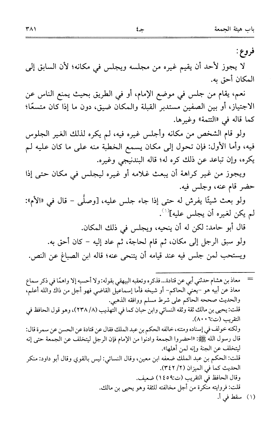 قال أبو حامد: لكن له أن ينحيه، ويجلس في ذلك المكان.