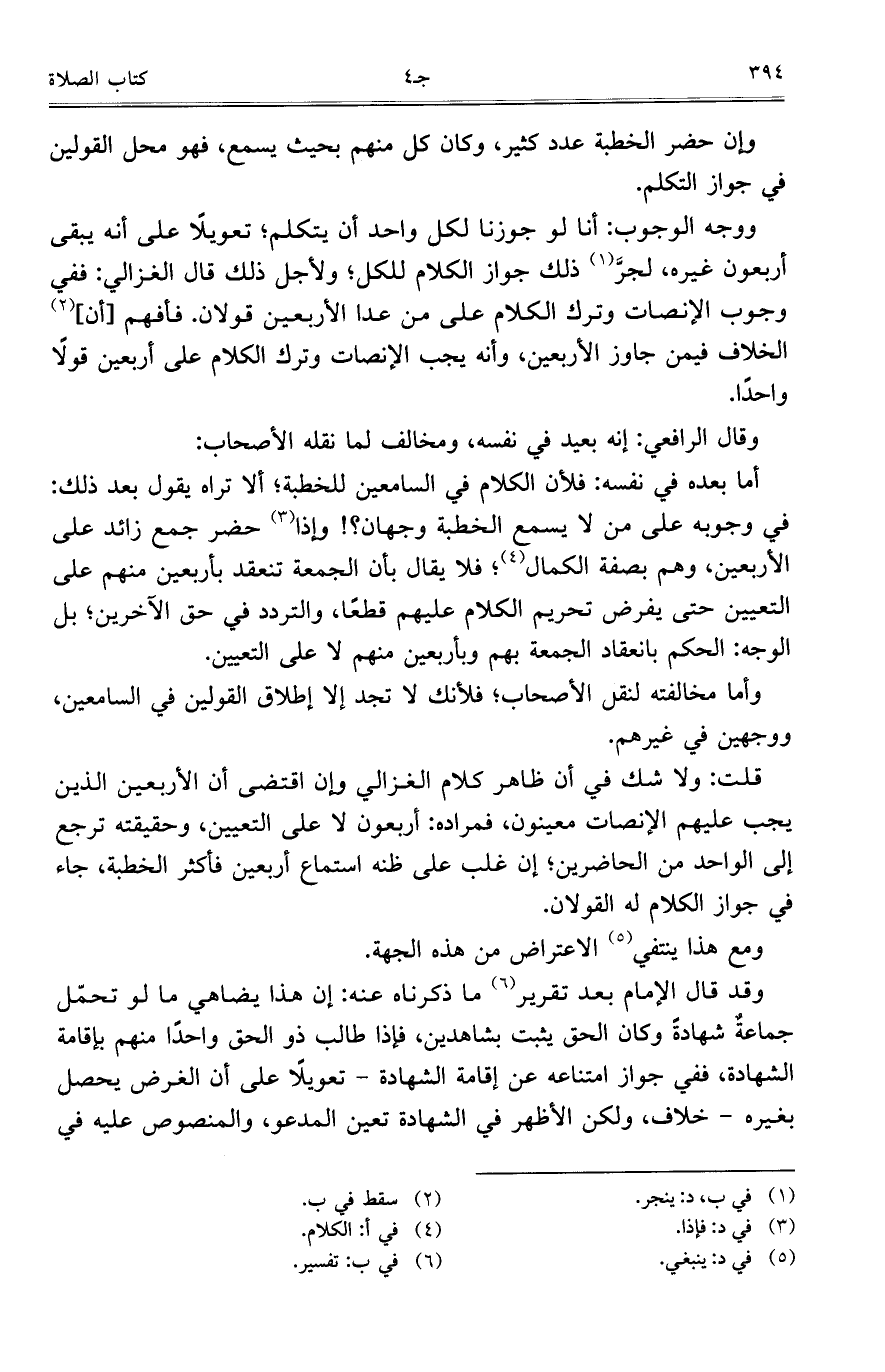 ووجه الوجوب: أنا لو جوزنا لكل واحد أن يتكلم؛ تعويلاً على أنه يبقى أربعون غيره، لجرَّ ذلك جواز الكلام للكل؛ ولأجل ذلك قال الغزالي: ففي وجوب الإنصات وترك الكلام على من عدا الأربعين قولان. فأفهم [أن] الخلاف فيمن جاوز الأربعين، وأنه يجب الإنصات وترك الكلام على أربعين قولاً واحداً.