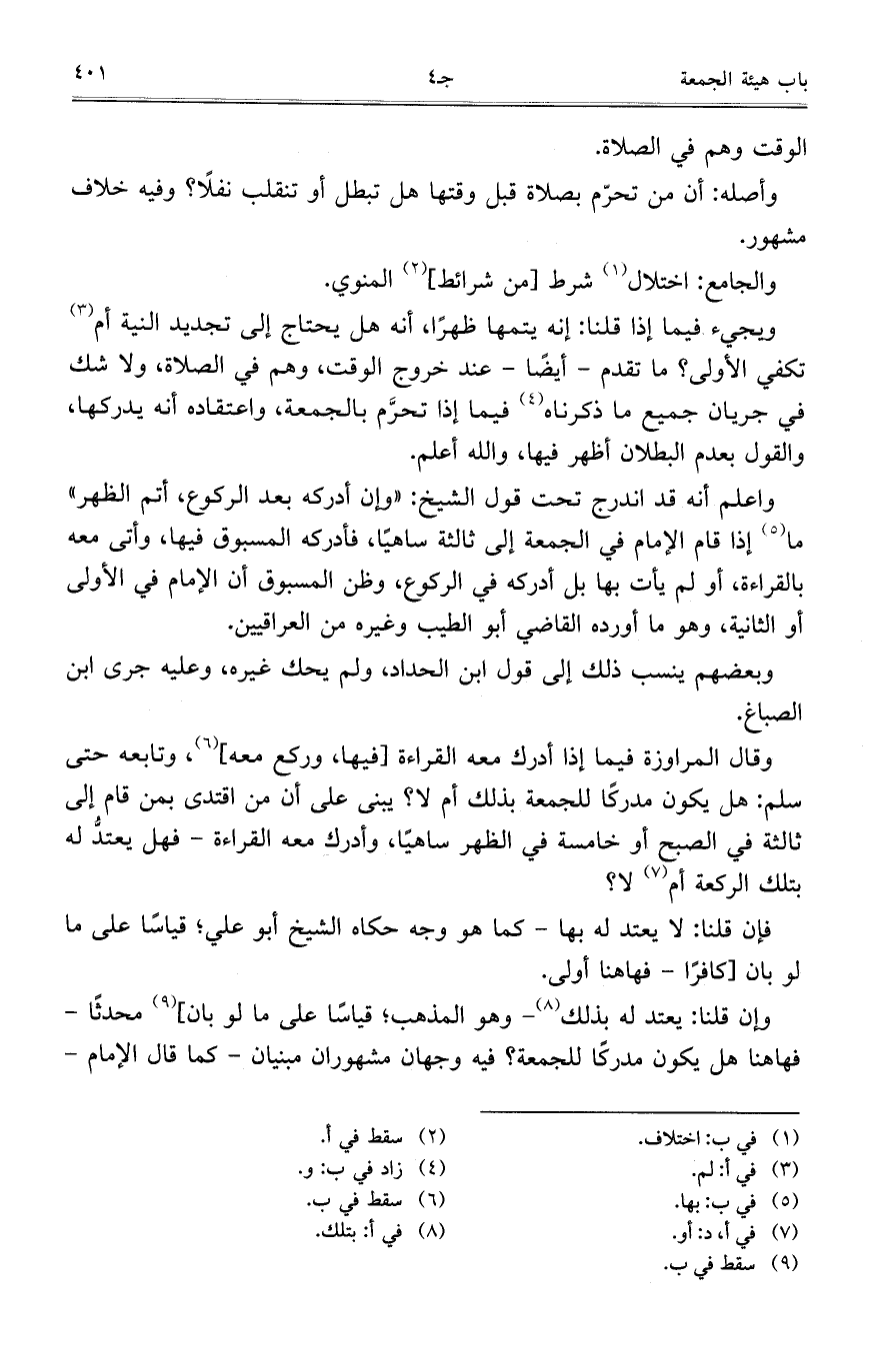 ويجيء فيما إذا قلنا: إنه يتمها ظهراً، أنه هل يحتاج إلى تجديد النية أم تكفي الأولى؟ ما تقدم- أيضاً- عند خروج الوقت، وهم في الصلاة، ولاشك في جريان جميع ما ذكرناه فيما إذا تحرَّم بالجمعة، واعتقاده أنه يدركها، والقول بعدم البطلان أظهر فيها، والله أعلم.