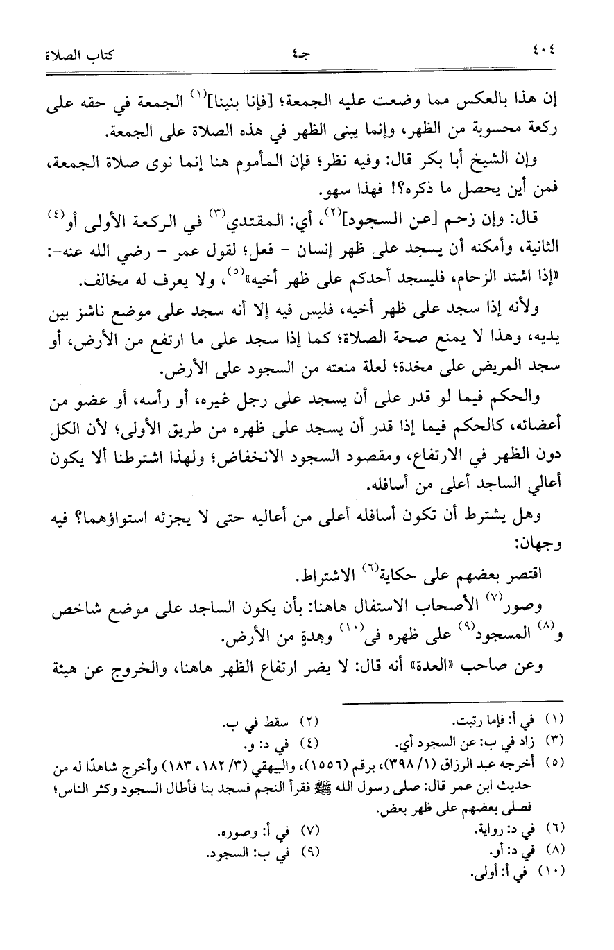 قال: وإن زحم [عن السجود]، أي: المقتدي في الركعة الأولى أو الثانية، وأمكنه أن يسجد على ظهر إنسان- فعل؛ لقول عمر- رضي الله عنه-: "إذا اشتد الزحام، فليسجد أحدكم على ظهر أخيه"، ولا يعرف له مخالف.