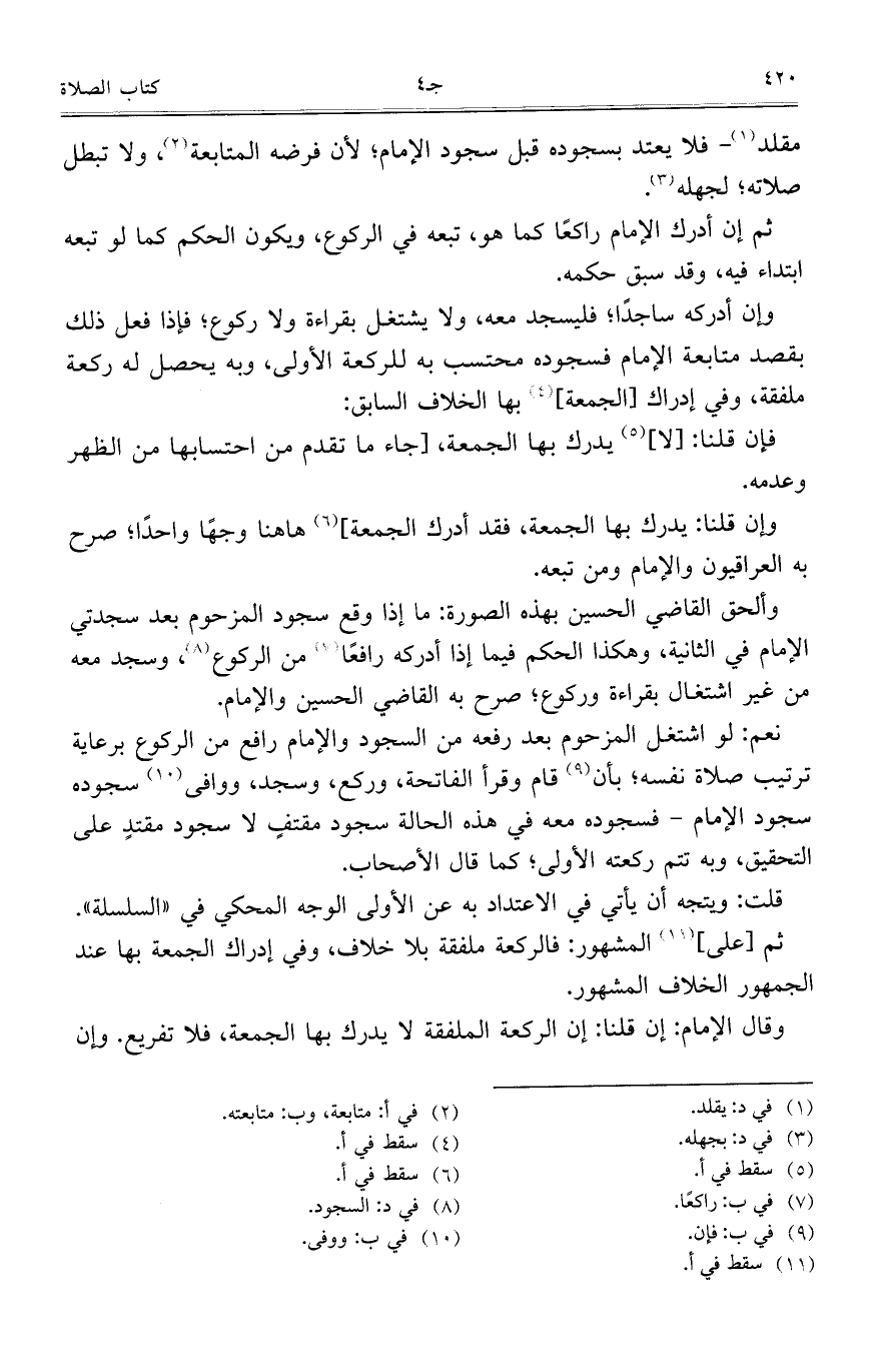 نعم: لو اشتغل المزحوم بعد رفعه من السجود والإمام رافع من الركوع برعاية ترتيب صلاة نفسه؛ بأن قام وقرأ الفاتحة، وركع، وسجد، ووافى سجوده سجود الإمام- فسجوده معه في هذه الحالة سجود مقتفٍ لا سجود مقتدٍ على التحقيق، وبه تتم ركعته الأولى؛ كما قال الأصحاب.
