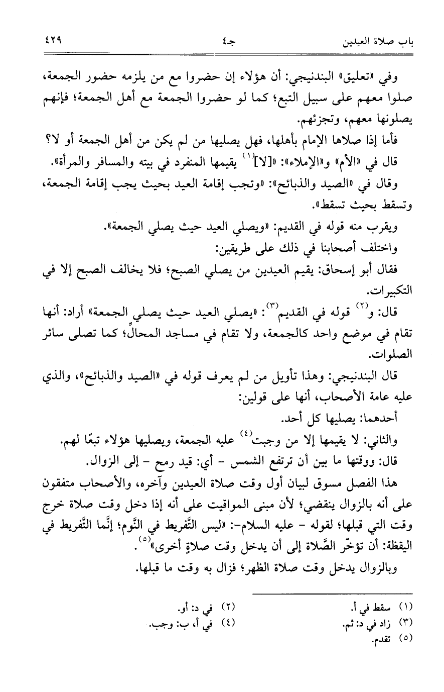 وقال في "الصيد والذبائح": "وتجب إقامة العيد بحيث يجب إقامة الجمعة، وتسقط بحيث تسقط".