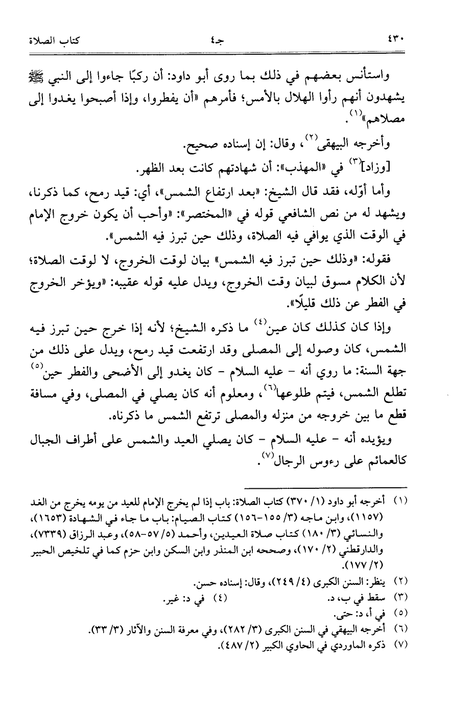 ويؤيده أنه- عليه السلام- كان يصلي العيد والشمس على أطراف الجبال كالعمائم على رءوس الرجال.