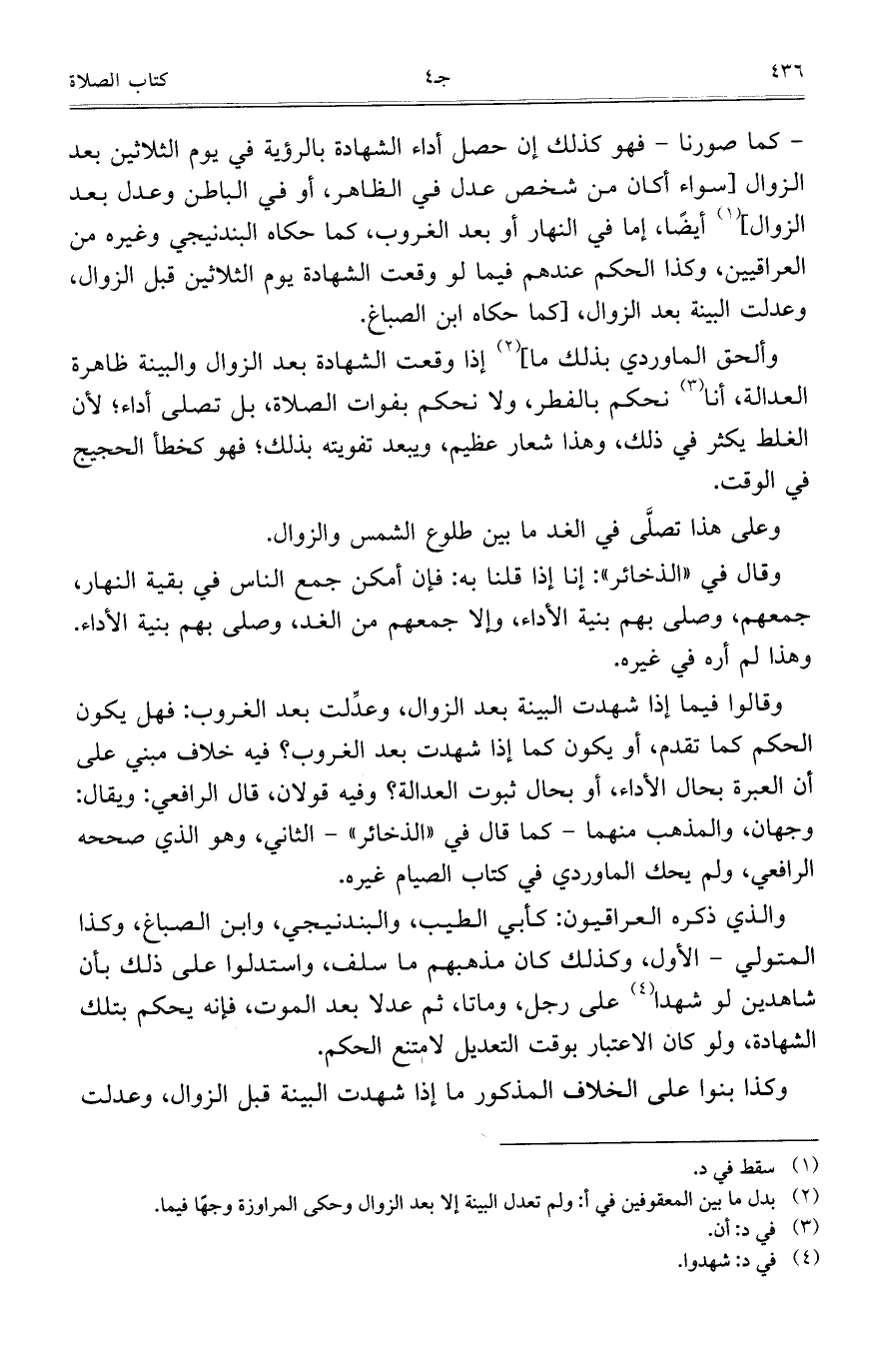 - كما صورنا- فهو كذلك إن حصل أداء الشهادة بالرؤية في يوم الثلاثين بعد الزوال [سواء أكان من شخص عدل في الظاهر، أو في الباطن وعدل بعد الزوال] أيضاً، إما في النهار أو بعد الغروب، كما حكاه البندنيجي وغيره من العراقيين، وكذا الحكم عندهم فيما لو وقعت الشهادة يوم الثلاثين قبل الزوال، وعدلت البينة بعد الزوال، [كما حكاه ابن الصباغ.