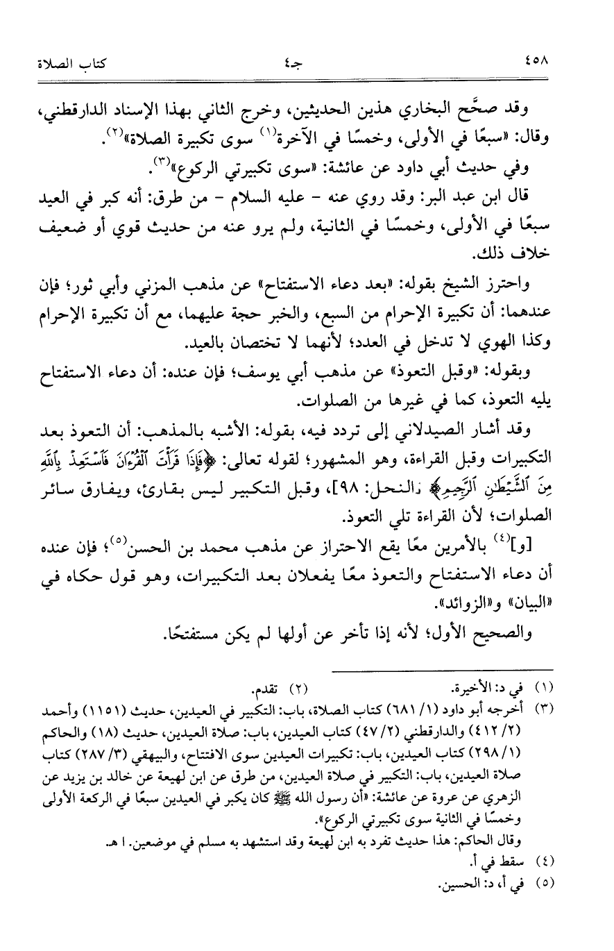 واحترز الشيخ بقوله: "بعد دعاء الاستفتاح" عن مذهب المزني وأبي ثور؛ فإن عندهما: أن تكبيرة الإحرام من السبع، والخبر حجة عليهما، مع أن تكبيرة الإحرام وكذا الهوى لا تدخل في العدد؛ لأنهما لا تختصان بالعيد.