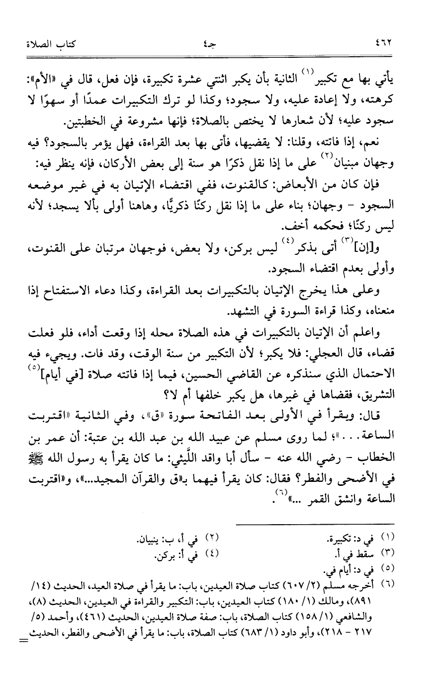 قال: ويقرأ في الأولى بعد الفاتحة سورة "ق"، وفي الثانية "اقتربت الساعة .. "؛ لما روى مسلم عن عبيد الله بن عبد الله بن عتبة: أن عمر بن الخطاب- رضي الله عنه- سأل أبا واقد اللَّيثي: ما كان يقرأ به رسول الله صلى الله عليه وسلم في الأضحى والفطر؟ فقال: كان يقرأ فيهما بـ "ق والقرآن المجيد ... "، و"اقتربت الساعة وانشق القمر .. ".