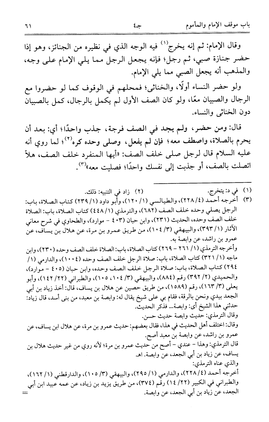قال: ومن حضر، ولم يجد في الصف فرجة، جذب واحداً؛ أي: بعد أن يحرم بالصلاة، واصطف معه؛ فإن لم يفعل، وصلى وحده كره؛ لما روي أنه عليه السلام قال لرجل صلى خلف الصف: "أيها المنفرد خلف الصف، هلاّ اتصلت بالصف، أو جذبت إلى نفسك واحداً؛ فصليت معه".