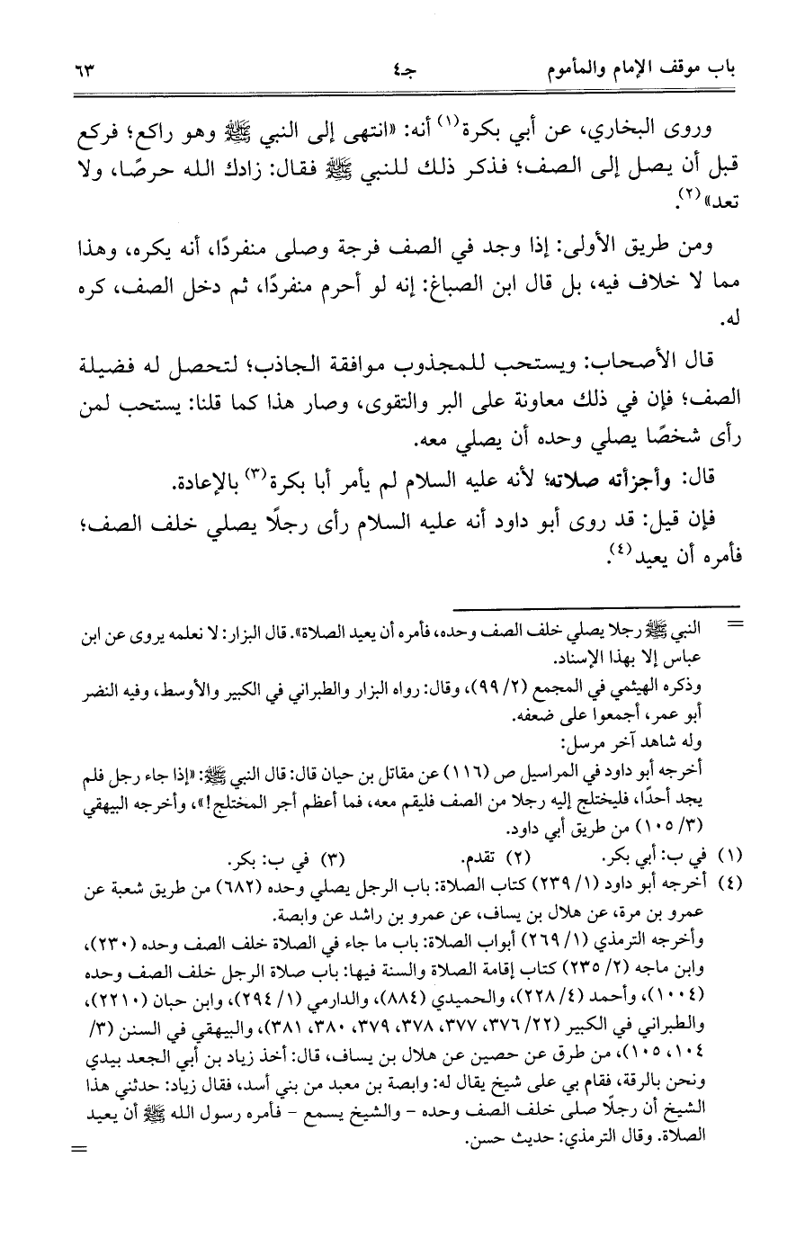 فإن قيل: قد روى أبو داود أنه عليه السلام رأى رجلاً يصلي خلف الصف؛ فأمره أن يعيد.