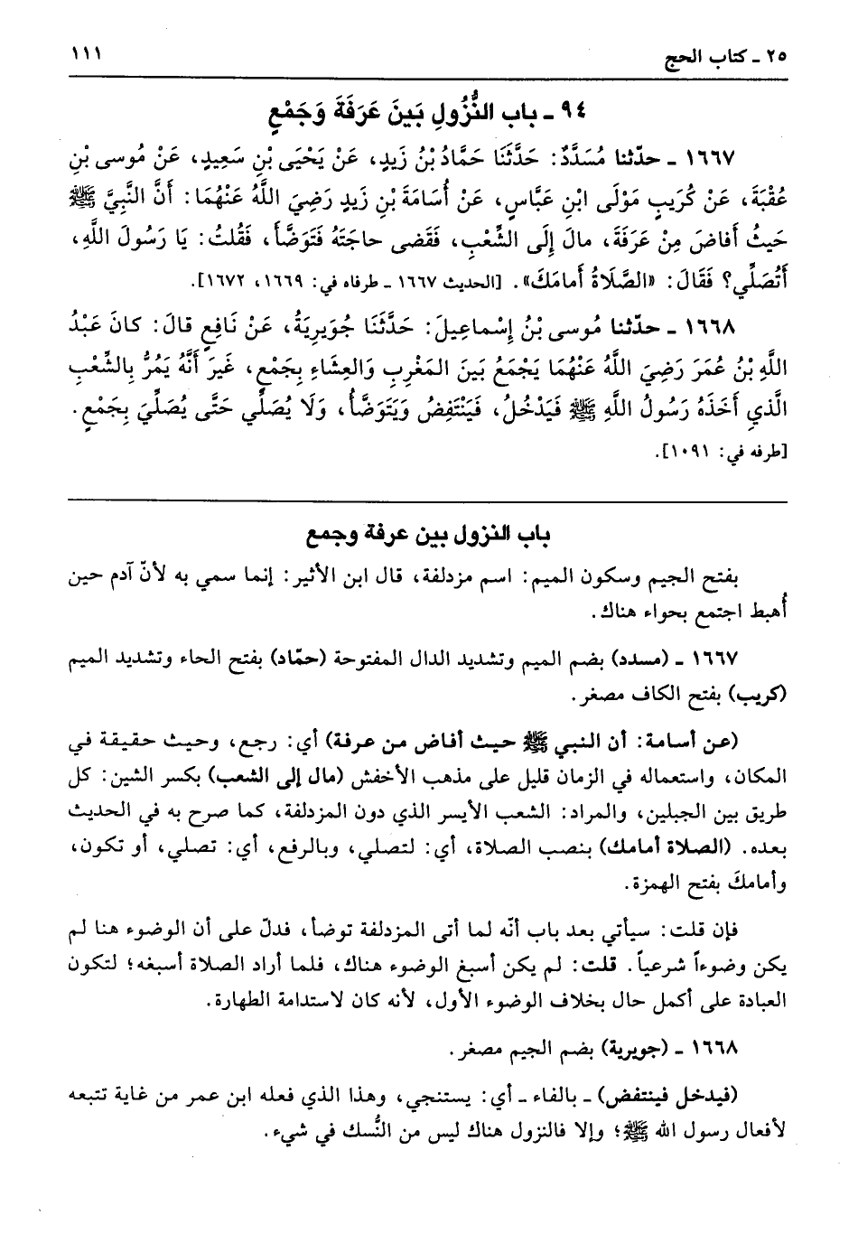 1667 - (مسدد) بضم الميم وتشديد الدال المفتوحة (حمّاد) بفتح الحاء وتشديد الميم (كريب) بفتح الكاف مصغر.