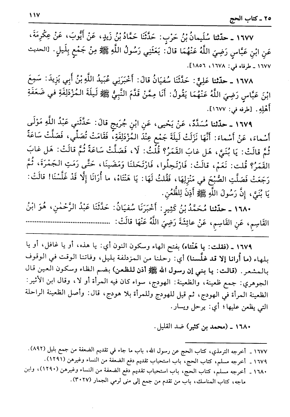 1679 - (فقلت: يا هَنْتاه) بفتح الهاء وسكون النون أي: يا هذه، أو يا غافل، أو يا بلهاء (ما أُرانا إلا قد غلَّسنا) أي: رحلنا من المزدلفة بليل، وفاتنا الوقت في الوقوف بالمشعر. (قالت: يا بني إن رسول الله - صلى الله عليه وسلم - أذن للظعن) بضم الظاء وسكون العين قال الجوهري: جمع ظعينة، والظعينة: الهودج، سواء كان فيه المرأة أو لا، وقال ابن الأثير: الظعينة المرأة في الهودج، ثم قيل للهودج وللمرأة بلا هودج، قال: وأصل الظعينة الراحلة التي يظعن عليها؛ أي: يرحل ويسار.
