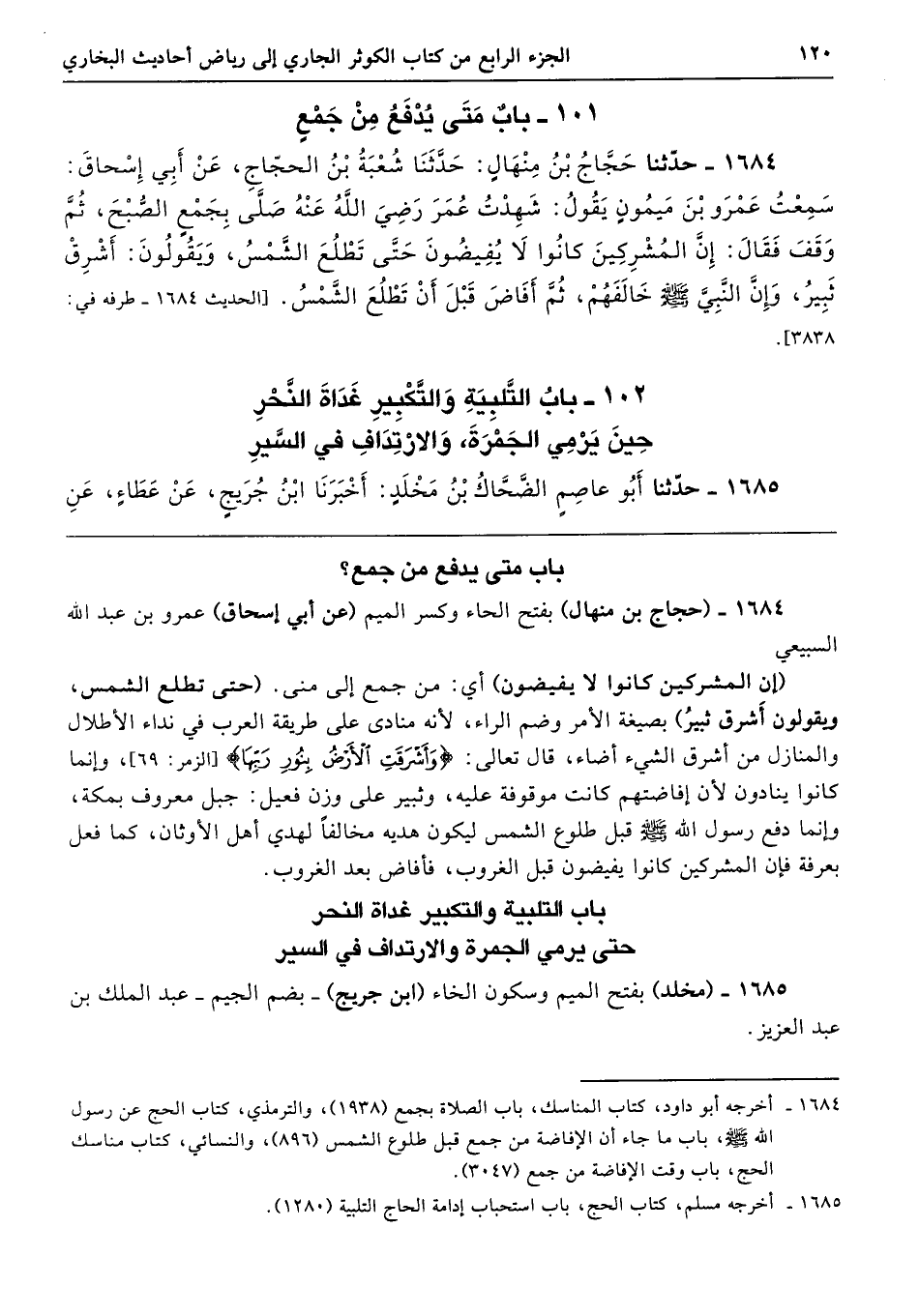 باب التلبية والتكبير غداة النحر حتَّى يرمي الجمرة والارتداف في السير