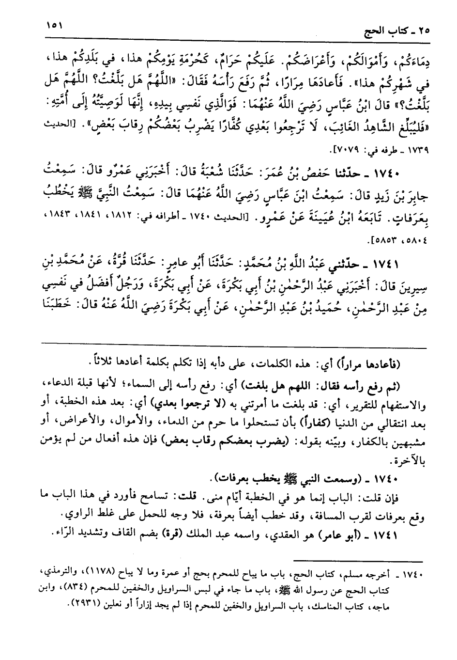 1740 - حَدَّثَنَا حَفْصُ بْنُ عُمَرَ حَدَّثَنَا شُعْبَةُ قَالَ أَخْبَرَنِى عَمْرٌو قَالَ سَمِعْتُ جَابِرَ بْنَ زَيْدٍ قَالَ سَمِعْتُ ابْنَ عَبَّاسٍ - رضى الله عنهما - قَالَ سَمِعْتُ النَّبِىَّ - صلى الله عليه وسلم - يَخْطُبُ بِعَرَفَاتٍ. تَابَعَهُ ابْنُ عُيَيْنَةَ عَنْ عَمْرٍو. أطرافه 1841، 1843، 5804، 5853