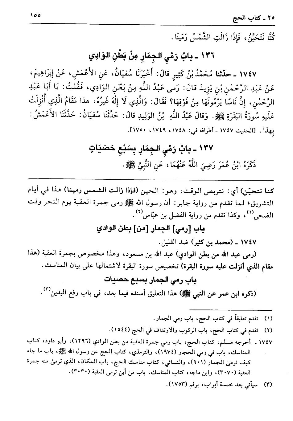 137 - باب رَمْىِ الْجِمَارِ بِسَبْعِ حَصَيَاتٍ