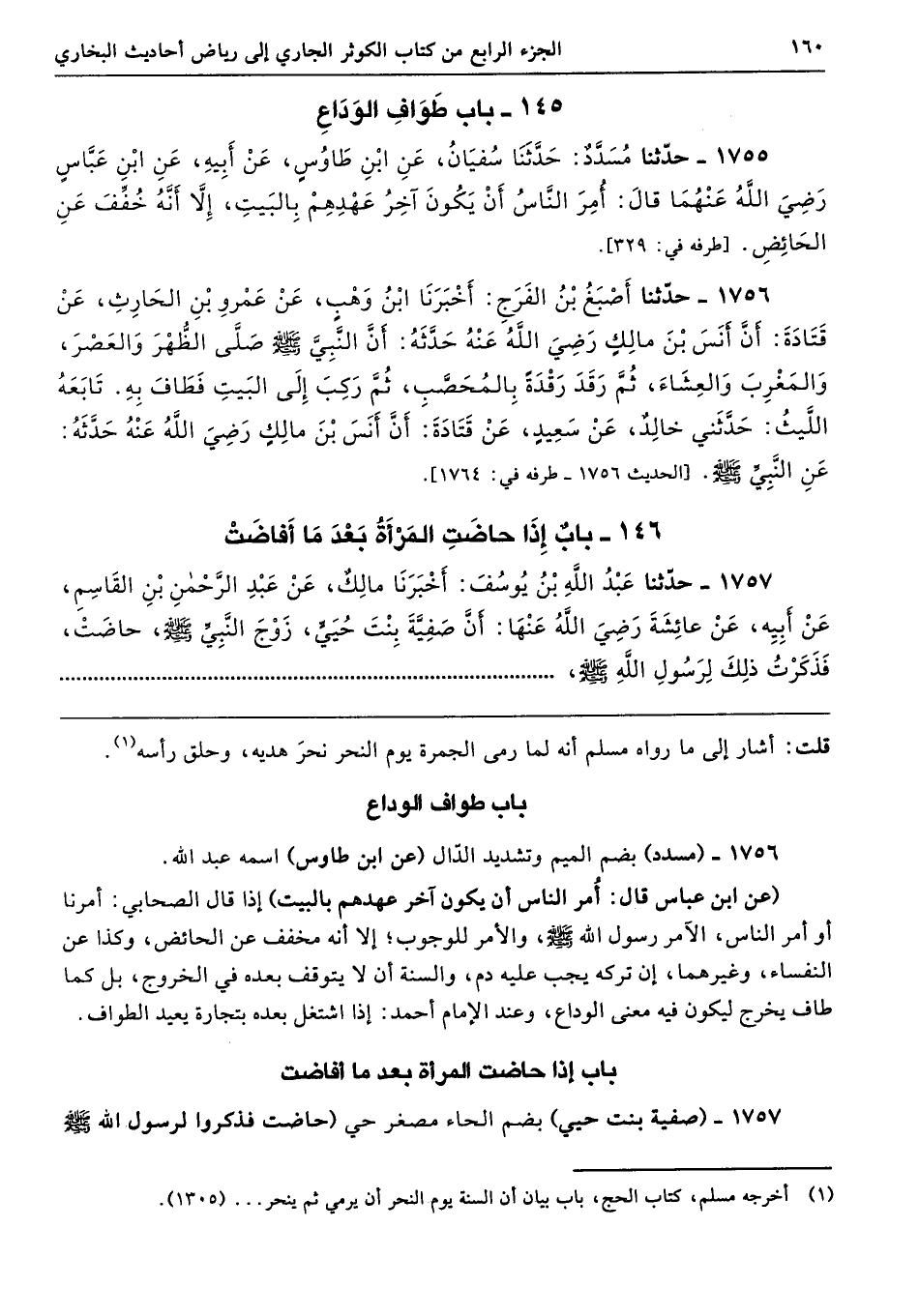 1757 - (صفية بنت حيي) بضم الحاء مصغر حي (حاضت فذكروا لرسول الله - صلى الله عليه وسلم -