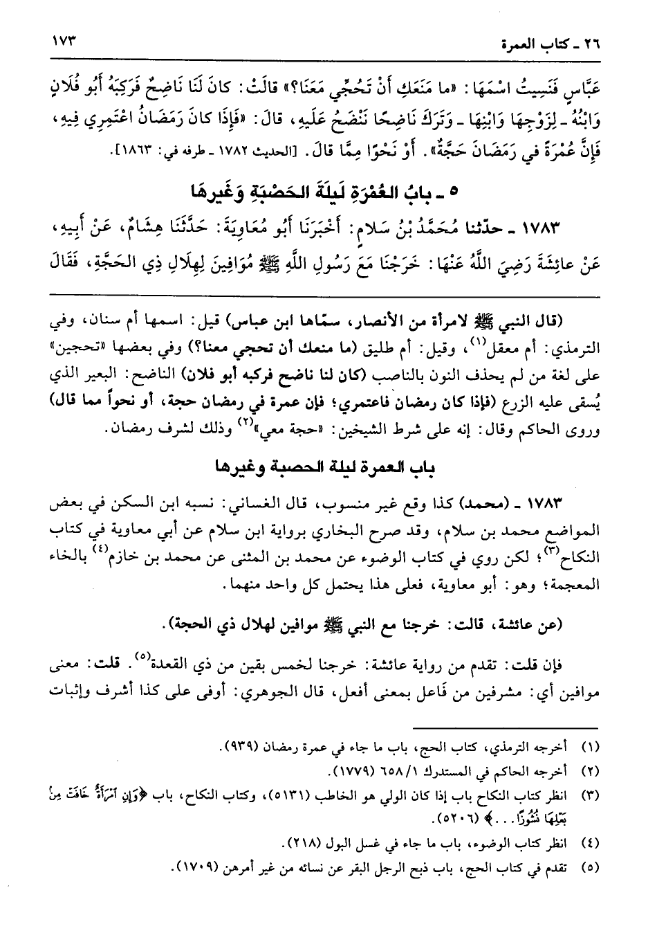 5 - باب الْعُمْرَةِ لَيْلَةَ الْحَصْبَةِ وَغَيْرِهَا