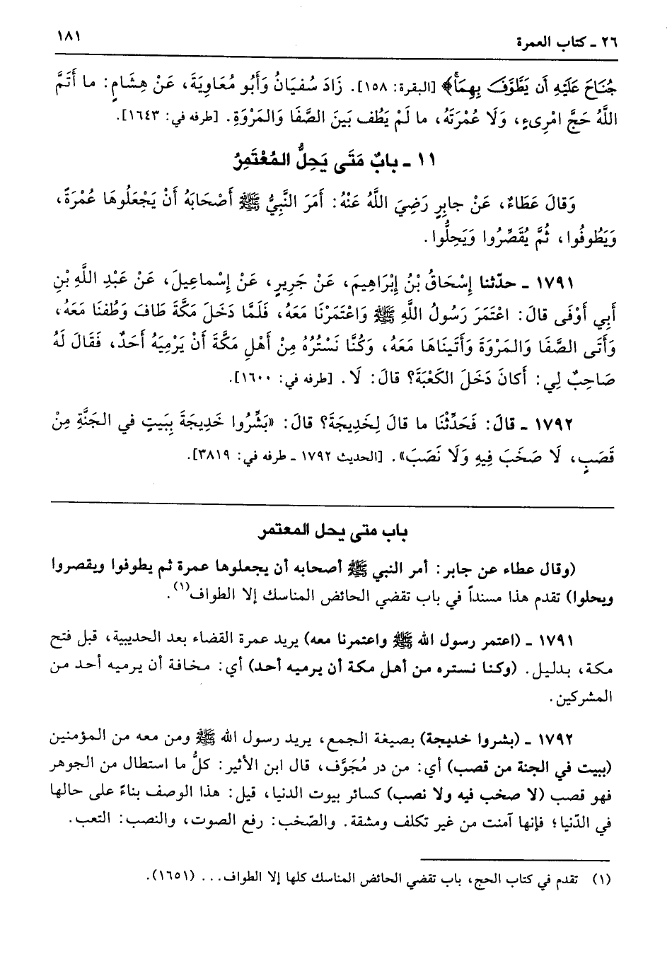 1791 - (اعتمر رسول الله - صلى الله عليه وسلم - واعتمرنا معه) يريد عمرة القضاء بعد الحديبية، قبل فتح مكة، بدليل. (وكنا نستره من أهل مكة أن يرميه أحد) أي: مخافة أن يرميه أحد من المشركين.