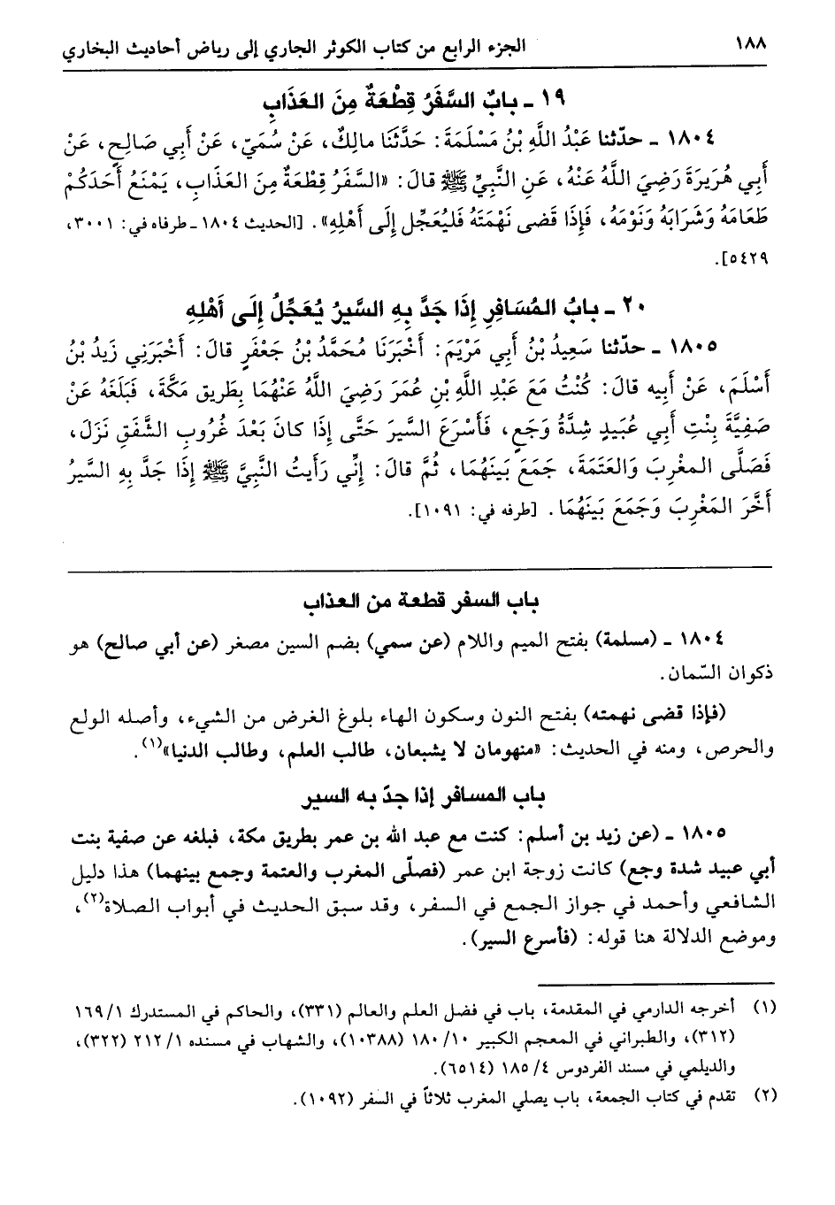 19 - باب السَّفَرُ قِطْعَةٌ مِنَ الْعَذَابِ