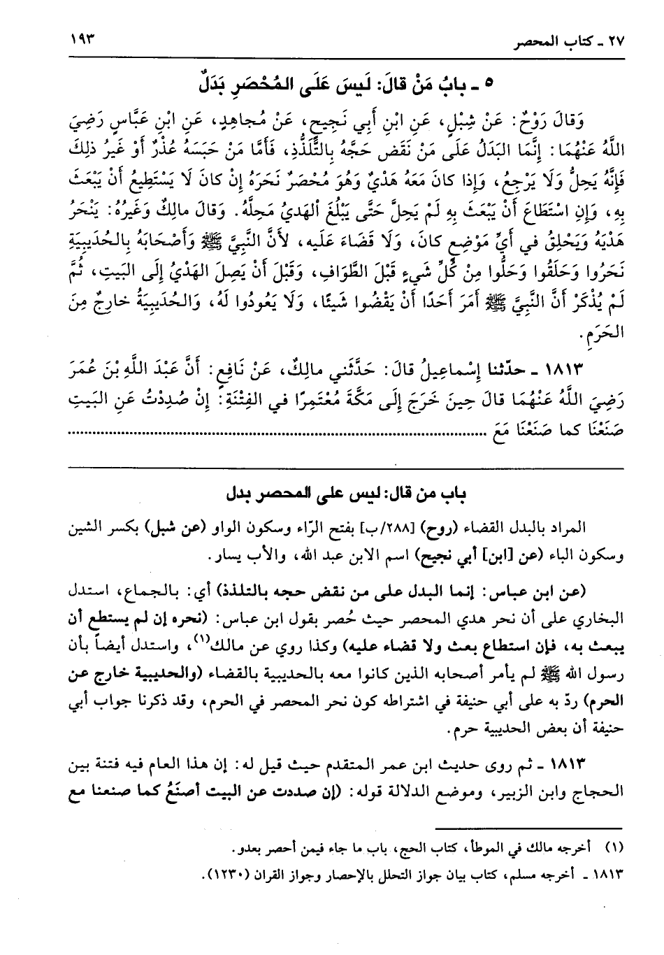 المراد بالبدل القضاء (روح) بفتح الرّاء وسكون الواو (عن شبل) بكسر الشين وسكون الباء (عن [ابن] أبي نجيح) اسم الابن عبد الله، والأب يسار.