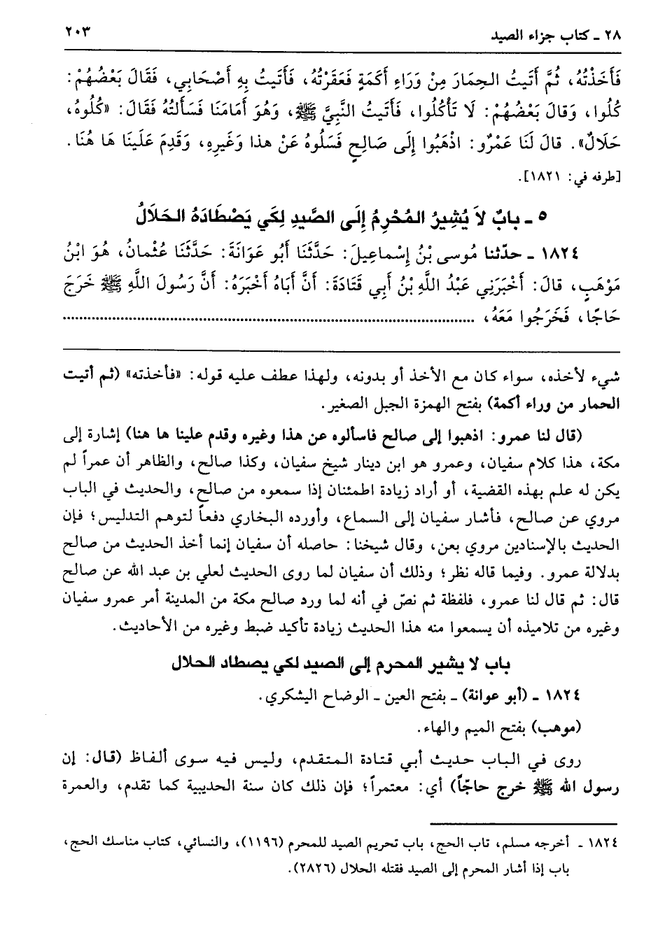 باب لا يشير المحرم إلى الصيد لكي يصطاد الحلال