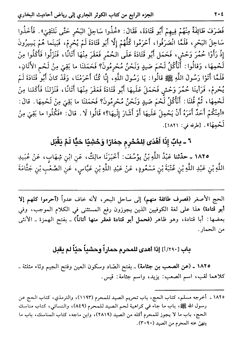 1825 - (عن الصعب بن جثامة) -بفتح الصّاد وسكون العين وفتح الجيم وثاء مثلثة- كلاهما لقب، اسم الصعب: يزيد، واسم جثامة: قيس.