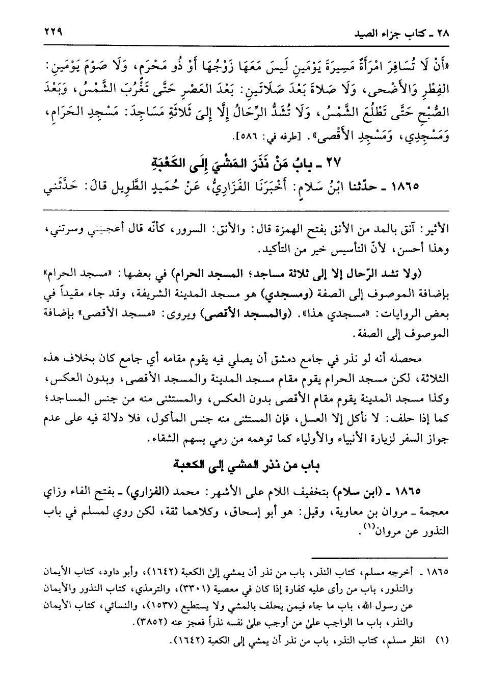 1865 - (ابن سلام) بتخفيف اللام على الأشهر: محمد (الفزاري) -بفتح الفاء وزاي معجمة- مروان بن معاوية، وقيل: هو أبو إسحاق، وكلاهما ثقة، لكن روي لمسلم في باب النذور عن مروان.