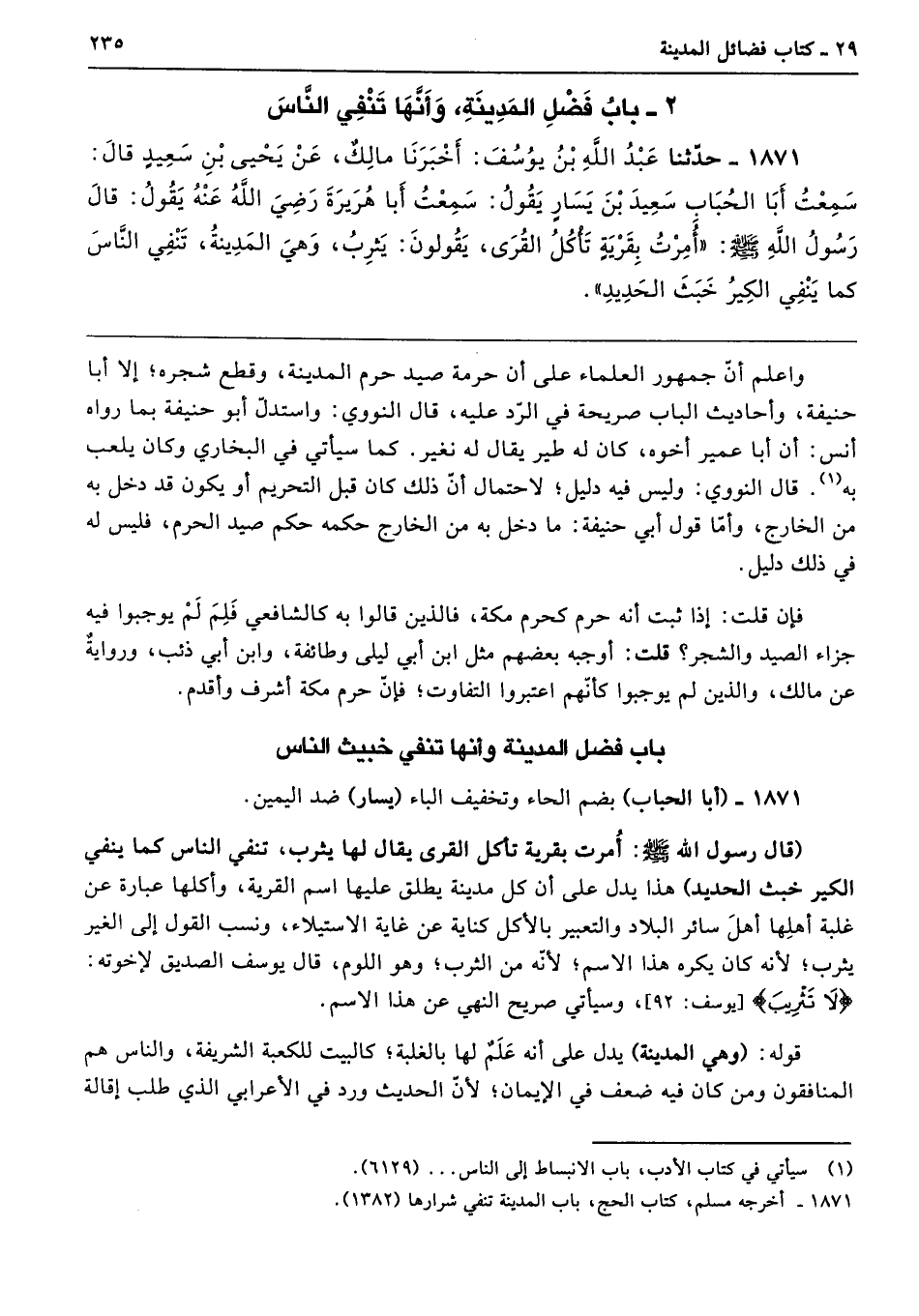 2 - باب فَضْلِ الْمَدِينَةِ، وَأَنَّهَا تَنْفِى النَّاسَ