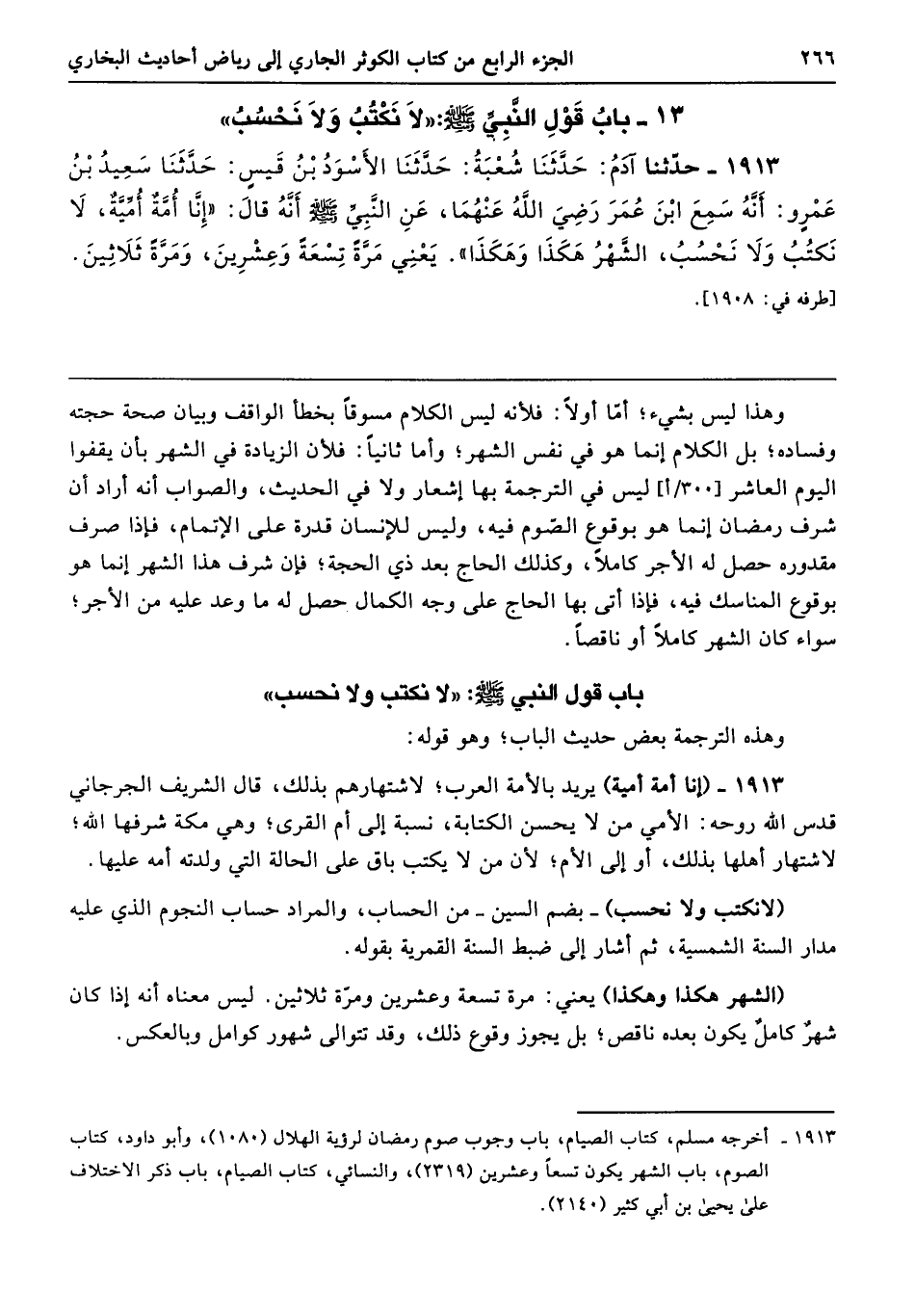 13 - باب قَوْلِ النَّبِيِّ - صلى الله عليه وسلم - «لاَ نَكْتُبُ وَلاَ نَحْسُبُ»