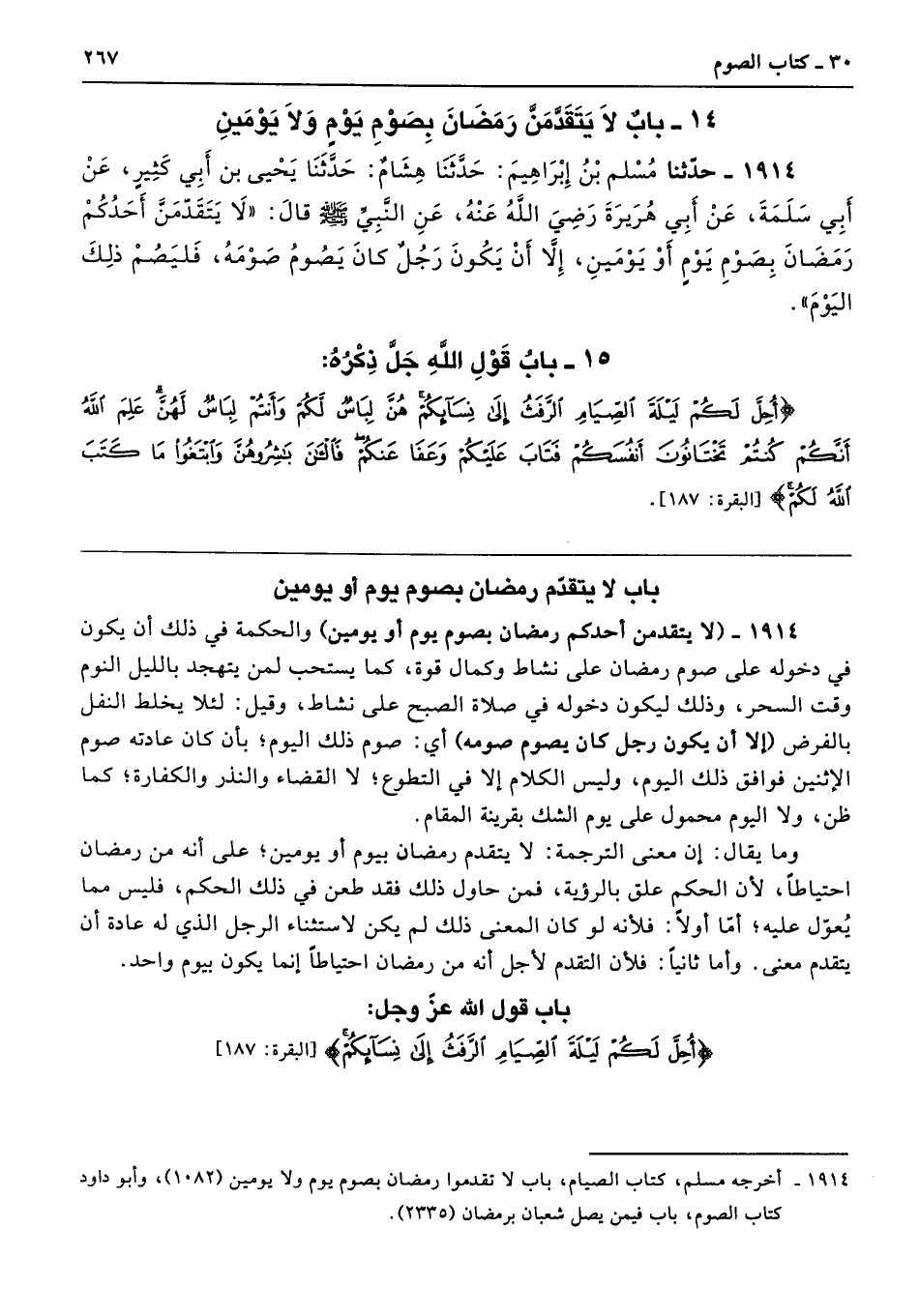 باب لا يتقدَّم رمضان بصوم يوم أو يومين