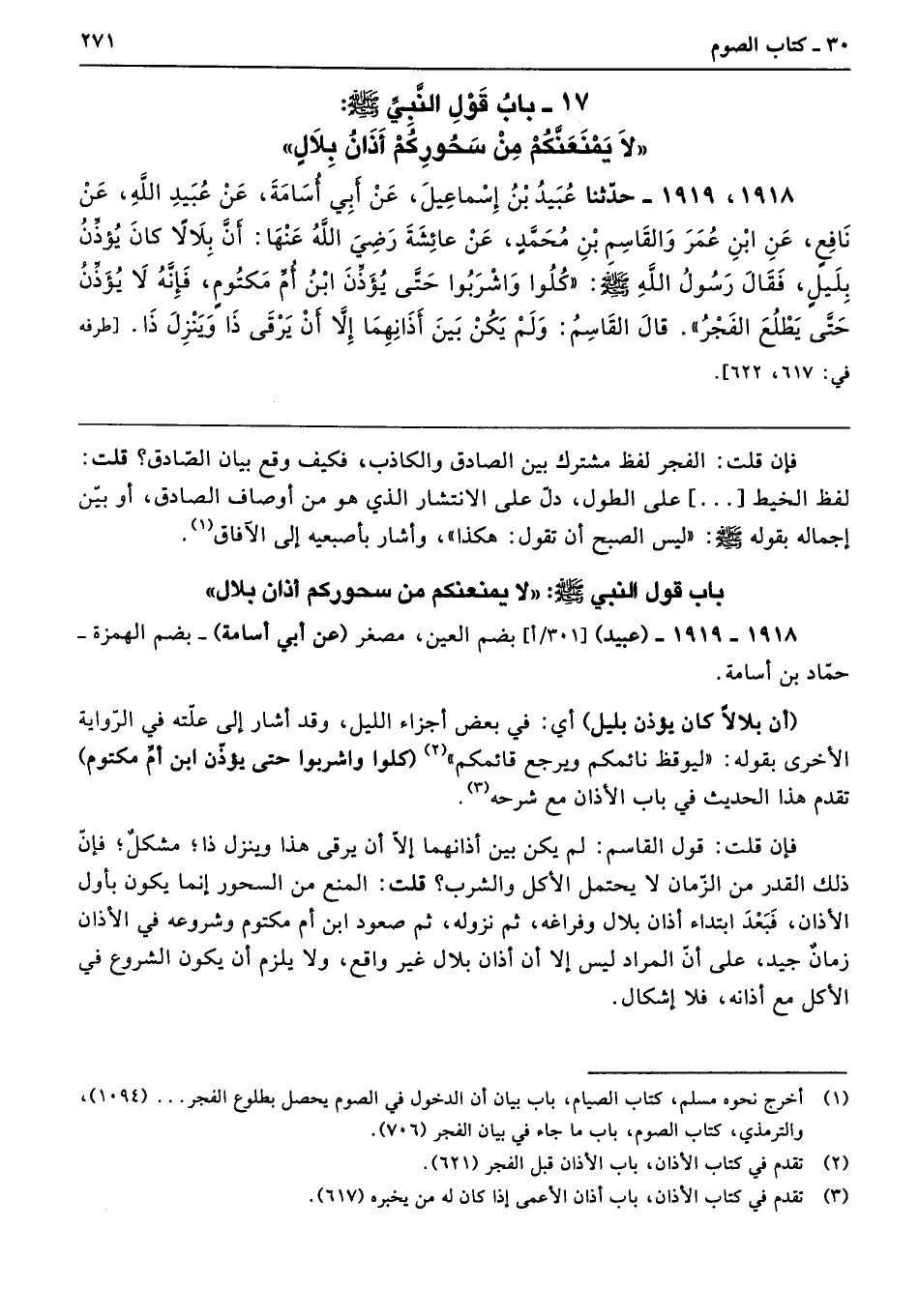 17 - باب قَوْلِ النَّبِيِّ - صلى الله عليه وسلم - «لاَ يَمْنَعَنَّكُمْ مِنْ سَحُورِكُمْ أَذَانُ بِلاَلٍ»
