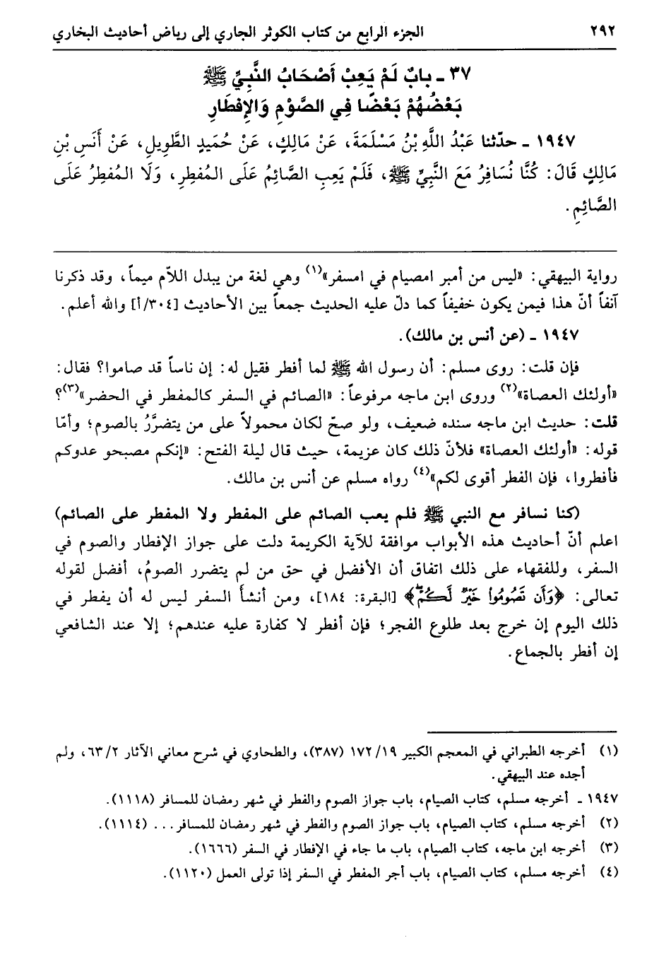 كتاب الكوثر الجاري إلى رياض أحاديث البخاري (اسم الجزء: 4)