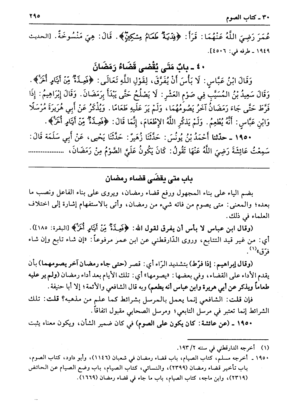 باب متى يقضَى قضاء رمضان