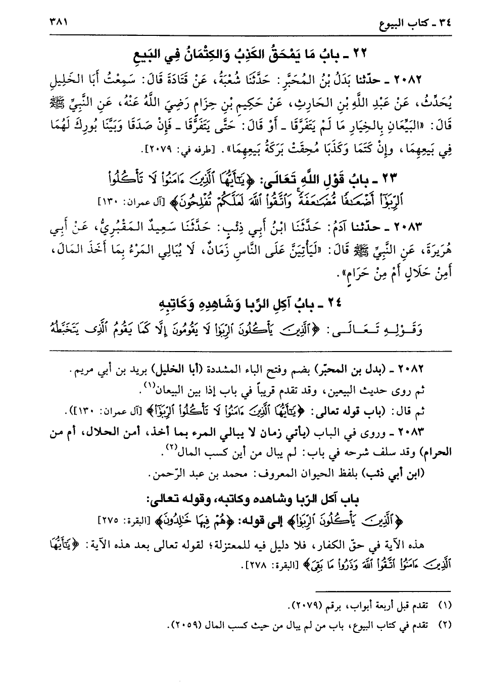 ثم قال: (باب قوله تعالى: {يَاأَيُّهَا الَّذِينَ آمَنُوا لَا تَأْكُلُوا الرِّبَا} [آل عمران: 130].