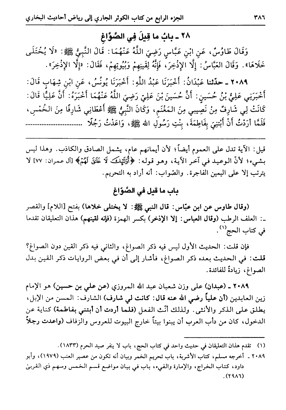 كتاب الكوثر الجاري إلى رياض أحاديث البخاري (اسم الجزء: 4)