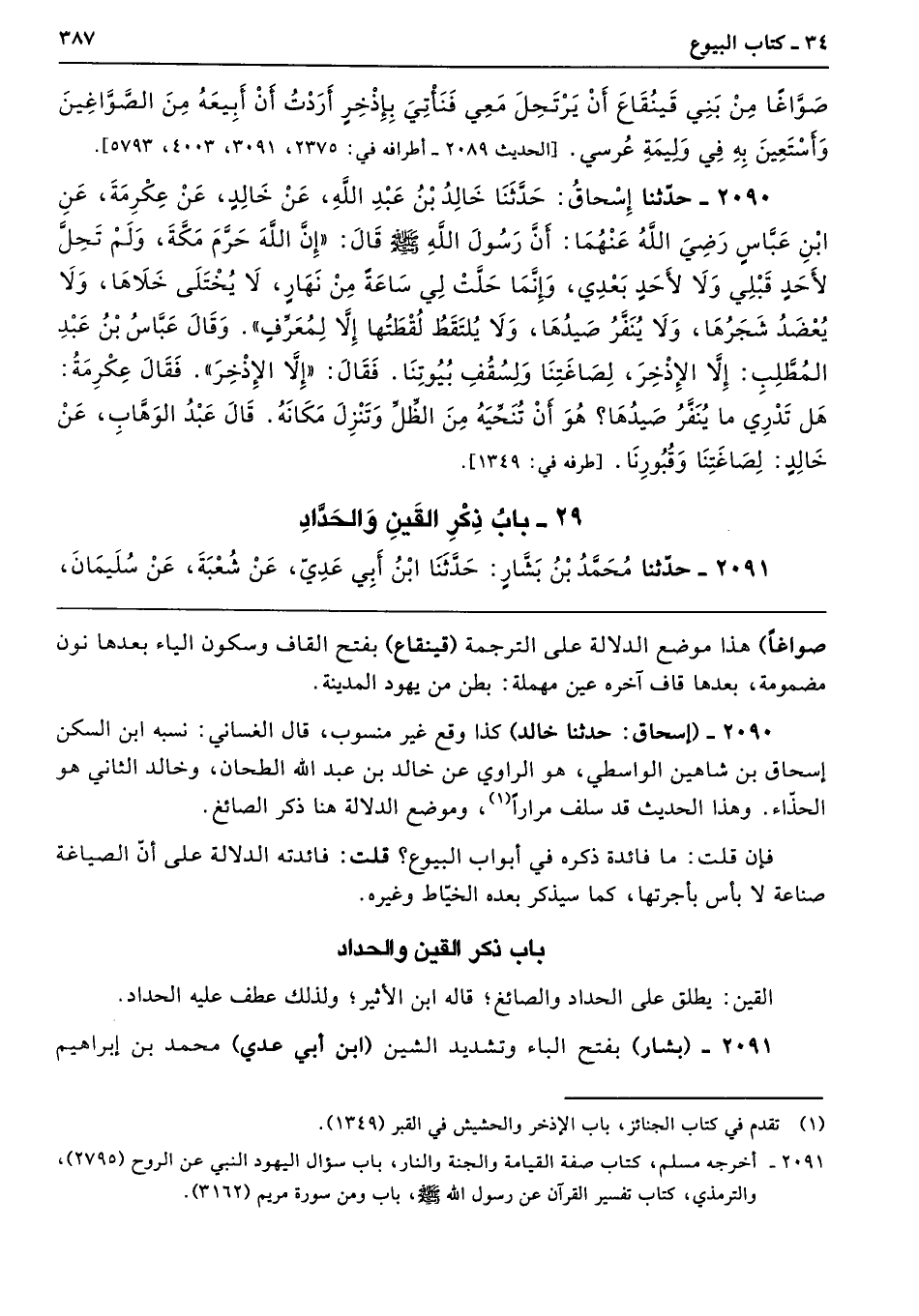 29 - باب ذِكْرِ الْقَيْنِ وَالْحَدَّادِ