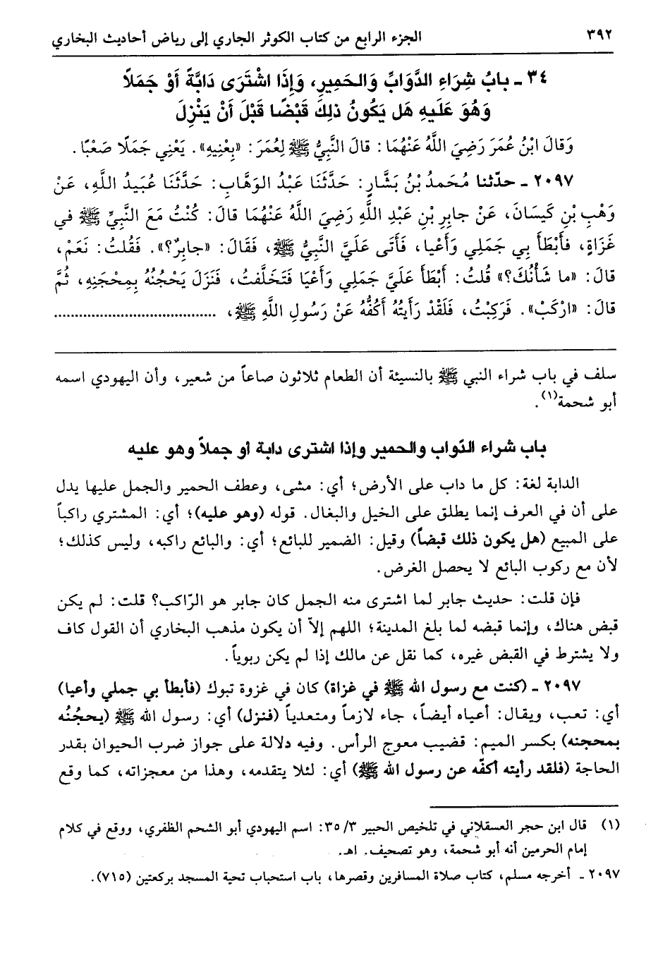 34 - باب شِرَاءِ الدَّوَابِّ وَالْحَمِيرِ، وَإِذَا اشْتَرَى دَابَّةً أَوْ جَمَلاً وَهُوَ عَلَيْهِ، هَلْ يَكُونُ ذَلِكَ قَبْضًا قَبْلَ أَنْ يَنْزِلَ