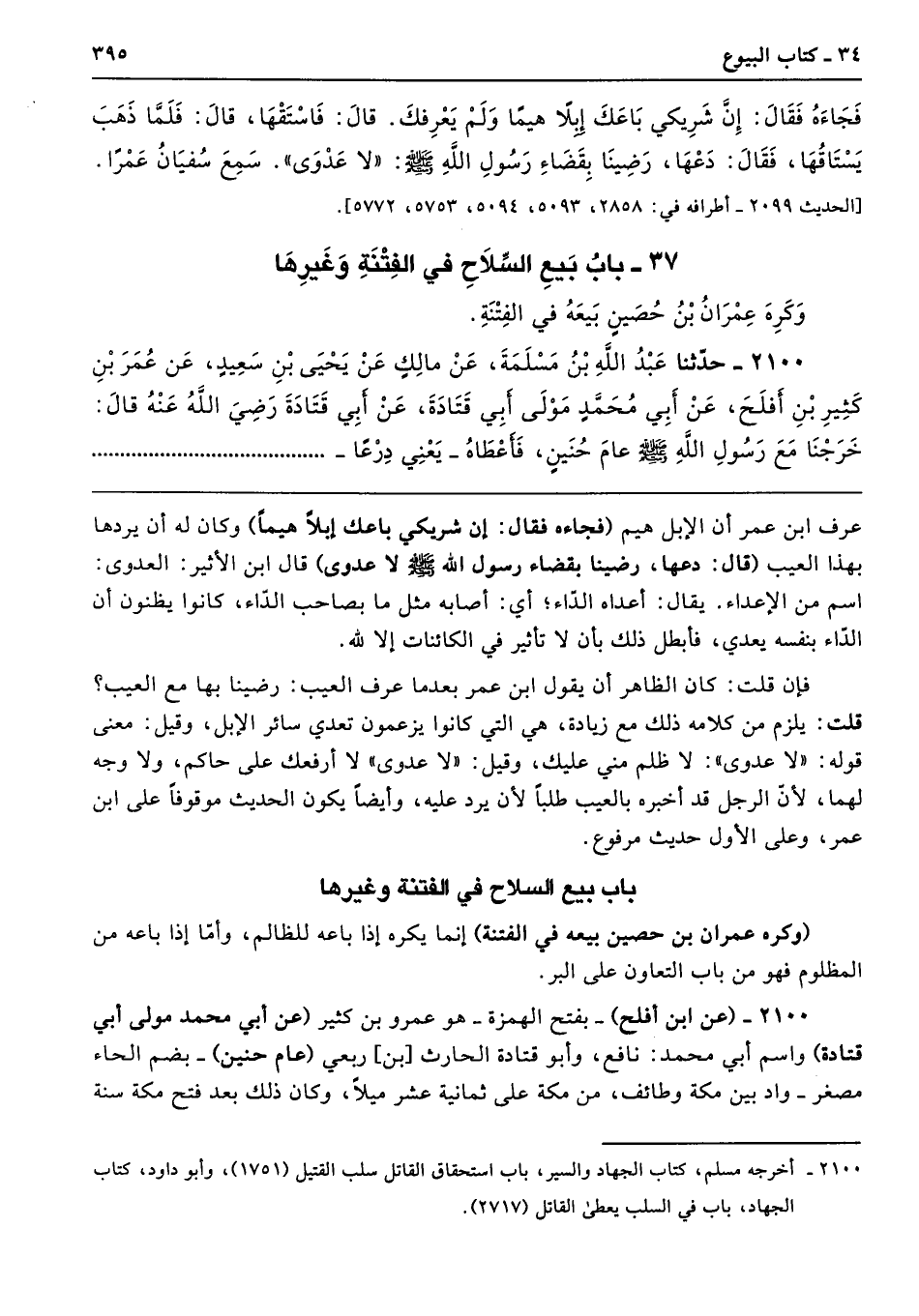 2100 - (عن ابن أفلح) -بفتح الهمزة- هو عمرو بن كثير (عن أبي محمد مولى أبي قتادة) واسم أبي محمد: نافع، وأبو قتادة الحارث [بن] ربعي (عام حنين) -بضم الحاء مصغر- واد بين مكة وطائف، من مكة على ثمانية عشر ميلًا، وكان ذلك بعد فتح مكة سنة