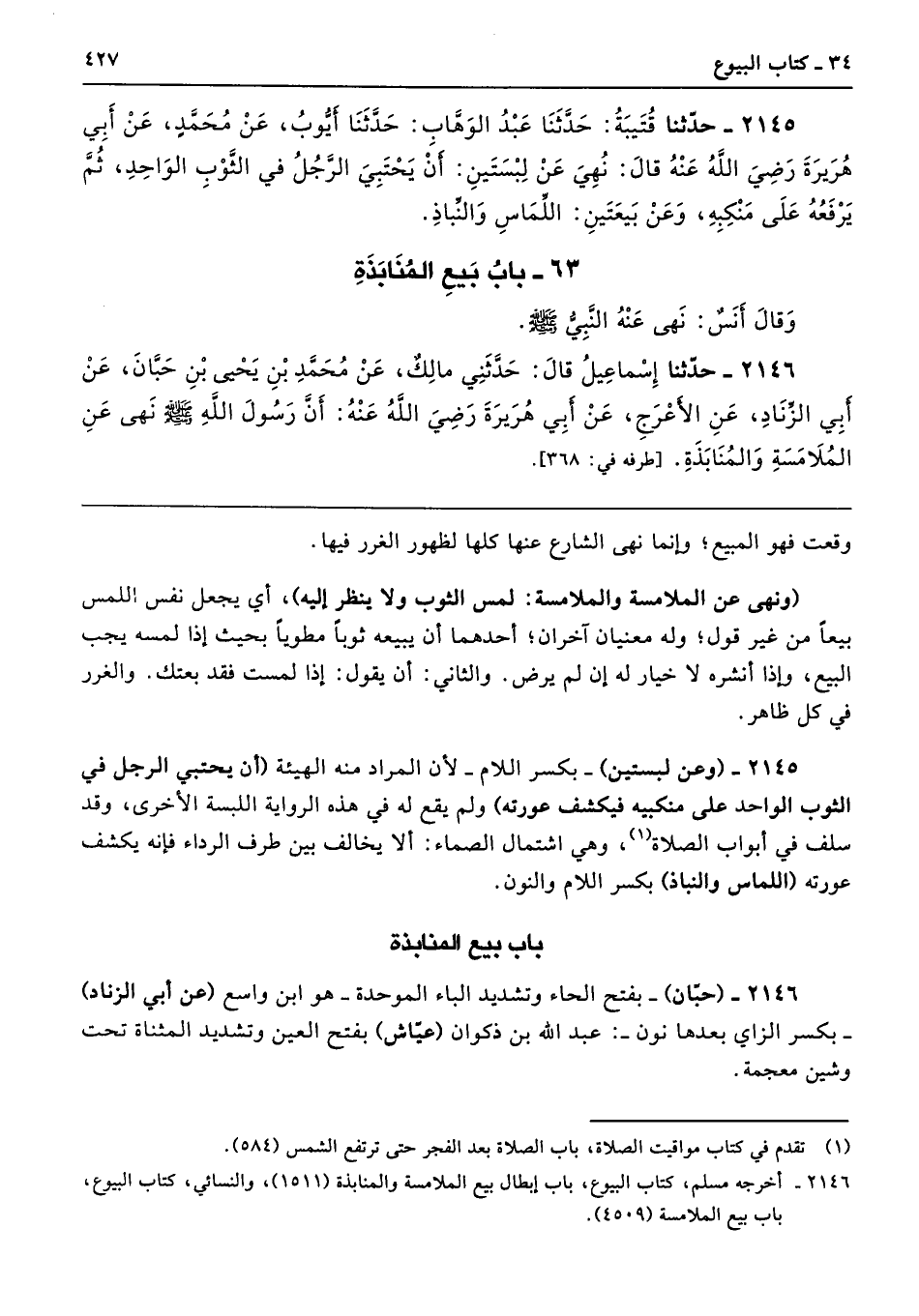 2146 - (حبّان) -بفتح الحاء وتشديد الباء الموحدة- هو ابن واسع (عن أبي الزِّناد) -بكسر الزاي بعدها نون-: عبد الله بن ذكوان (عيّاش) بفتح العين وتشديد المثناة تحت وشين معجمة.