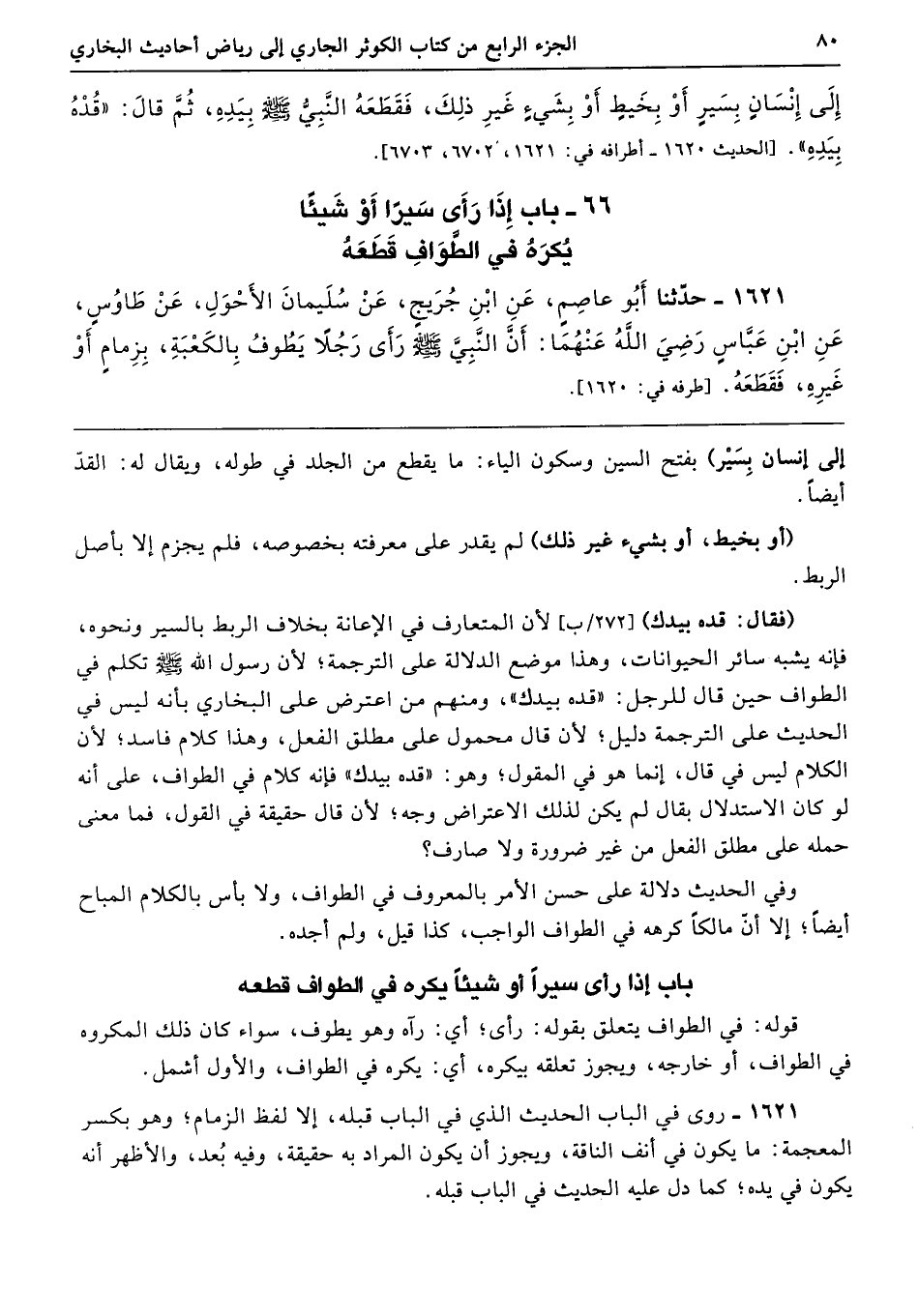 66 - باب إِذَا رَأَى سَيْرًا أَوْ شَيْئًا يُكْرَهُ فِي الطَّوَافِ قَطَعَهُ