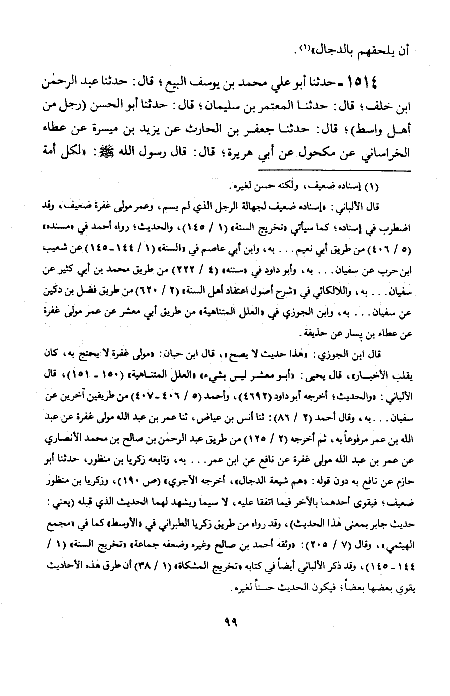 1514 - حَدَّثَنَا أَبُو عَلِيٍّ مُحَمَّدُ بْنُ يُوسُفَ الْبَيَّعُ قَالَ: حَدَّثَنَا عَبْدُ الرَّحْمَنِ بْنُ خَلَفٍ، قَالَ: حَدَّثَنَا الْمُعْتَمِرُ بْنُ سُلَيْمَانَ، قَالَ: حَدَّثَنَا أَبُو الْحَسَنِ، رَجُلٌ مِنْ أَهْلِ وَاسِطَ قَالَ: حَدَّثَنَا جَعْفَرُ بْنُ الْحَارِثِ، عَنْ يَزِيدَ بْنِ مَيْسَرَةَ، عَنْ عَطَاءٍ الْخُرَاسَانِيِّ، عَنْ مَكْحُولٍ، عَنْ أَبِي هُرَيْرَةَ، قَالَ: قَالَ رَسُولُ اللَّهِ صَلَّى اللَّهُ عَلَيْهِ وَسَلَّمَ: «§لِكُلِّ أُمَّةٍ -[100]- مَجُوسٌ، وَمَجُوسُ هَذِهِ الْأُمَّةِ الْقَدَرِيَّةُ، لَا تَعُودُوهُمْ إِذَا مَرِضُوا، وَلَا تُصَلُّوا عَلَيْهِمْ إِذَا مَاتُوا»