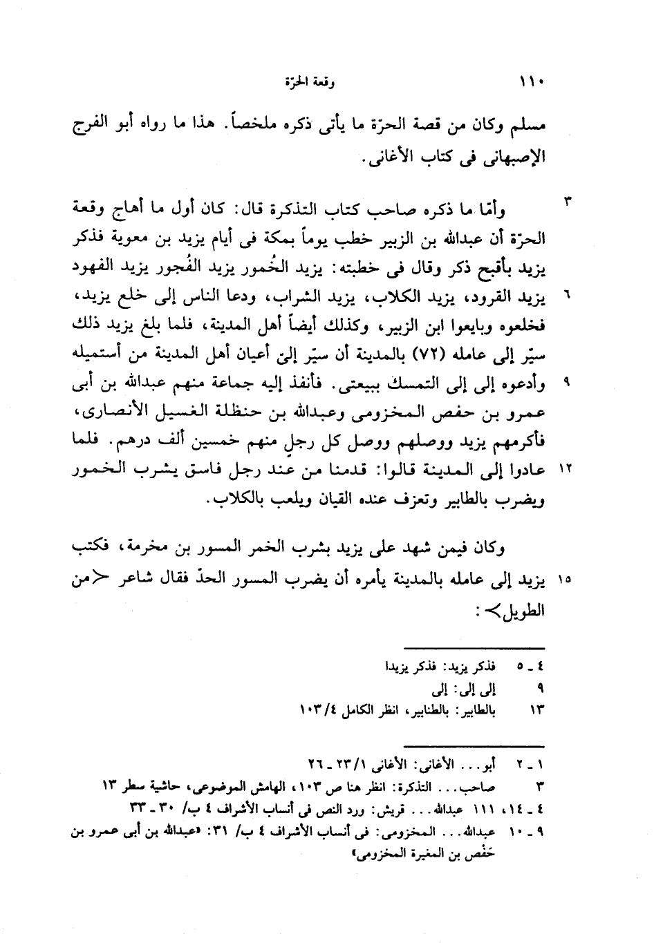 مسلم وكان من قصة الحرّة ما يأتى ذكره ملخصا. هذا ما رواه أبو الفرج الإصبهانى فى كتاب الأغانى.