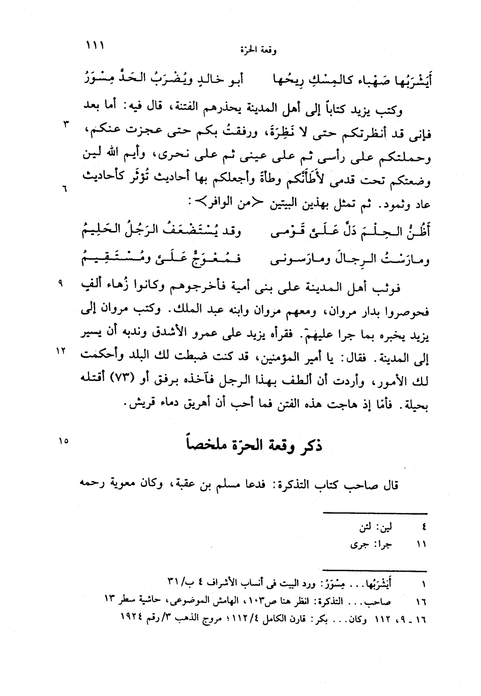 قال صاحب كتاب التذكرة: فدعا مسلم بن عقبة، وكان معوية رحمه
